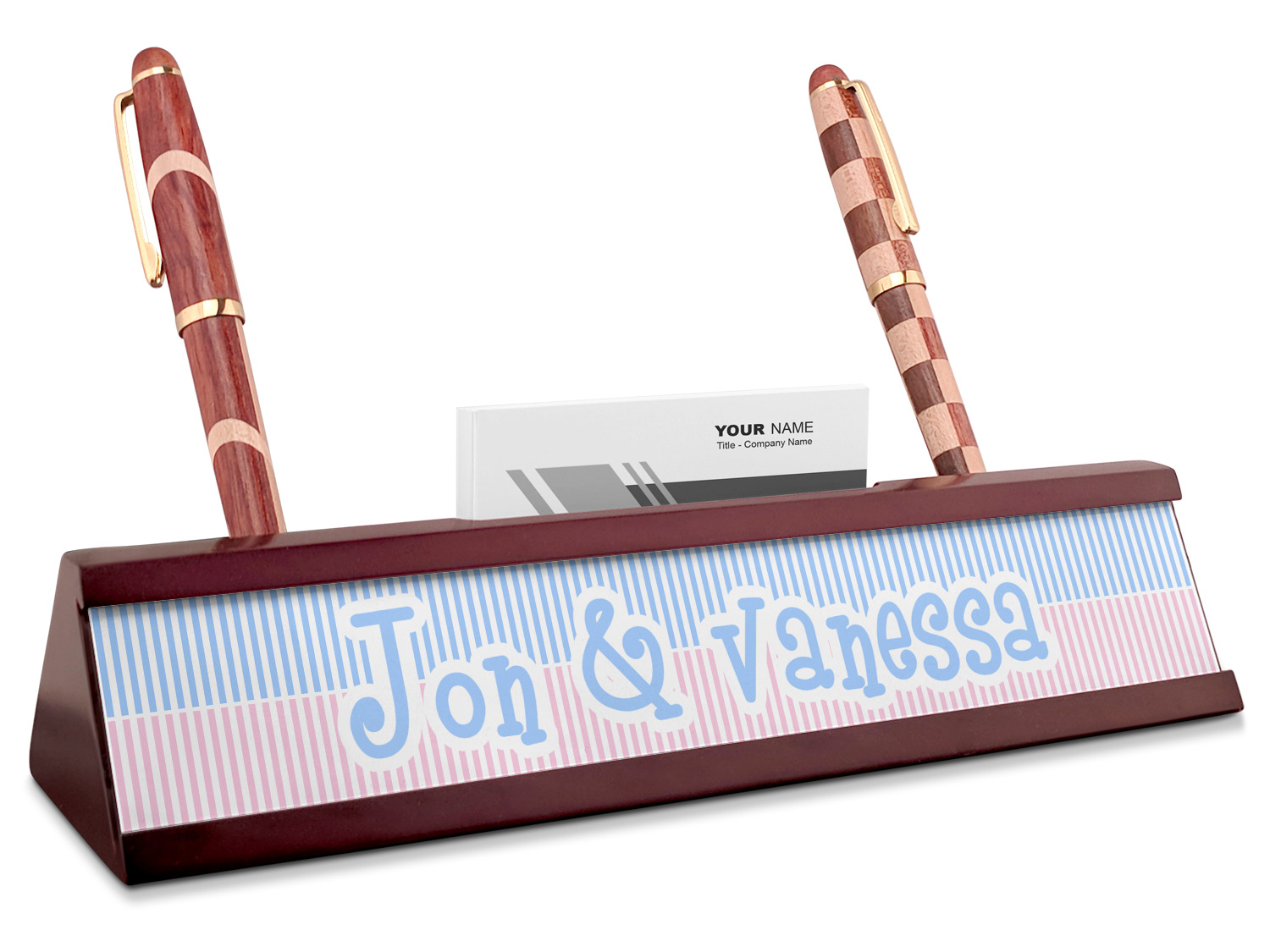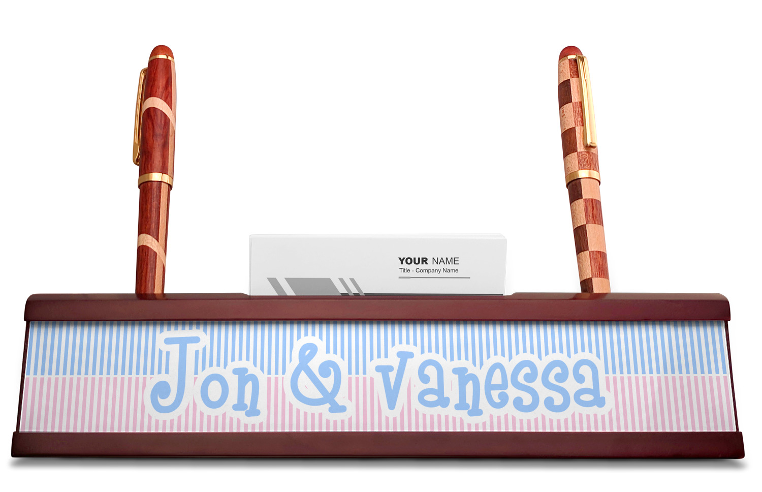 Add a sophisticated touch to your workspace with one of our name plates! These desk plaques even include a suave business card holder that will be sure to impress all of your clients!