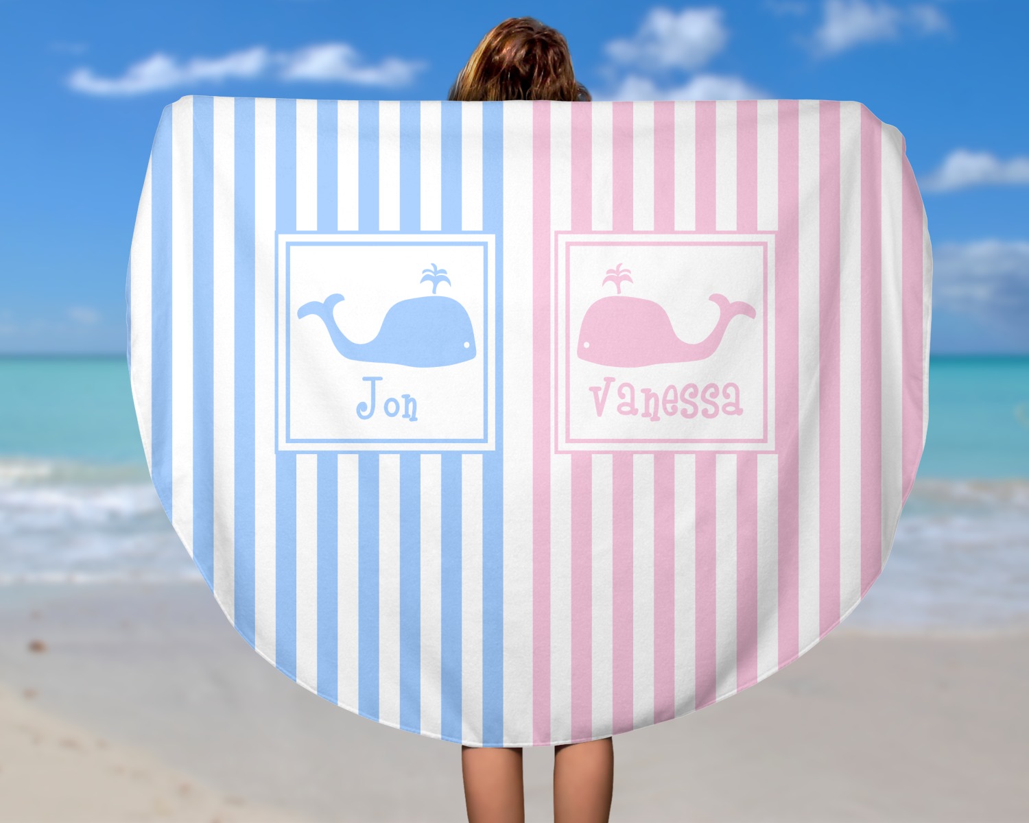 Think out of the box on your next beach, pool, or picnic day in style on your personalized round towel. This must have durable accessory is the perfect size for keeping you, and your possessions out of the sand. Sprawl out in the sun without getting your hands dirty, the unique round design allows for a full range of motion.