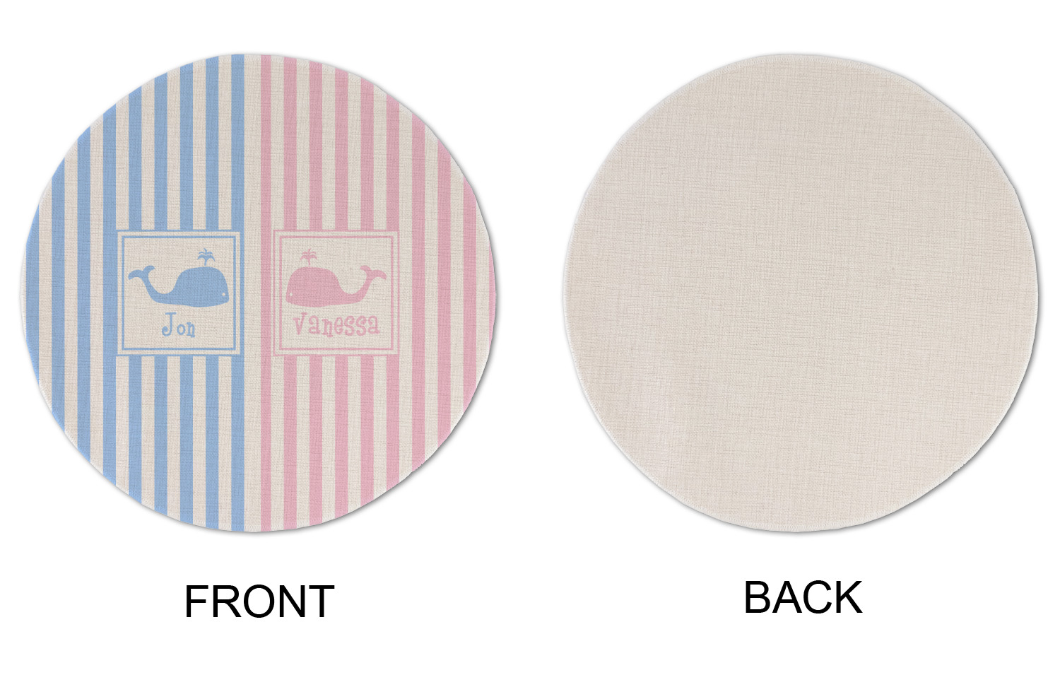 We chose to use whales as our graphics with names for personalization underneath in coordinating colors.