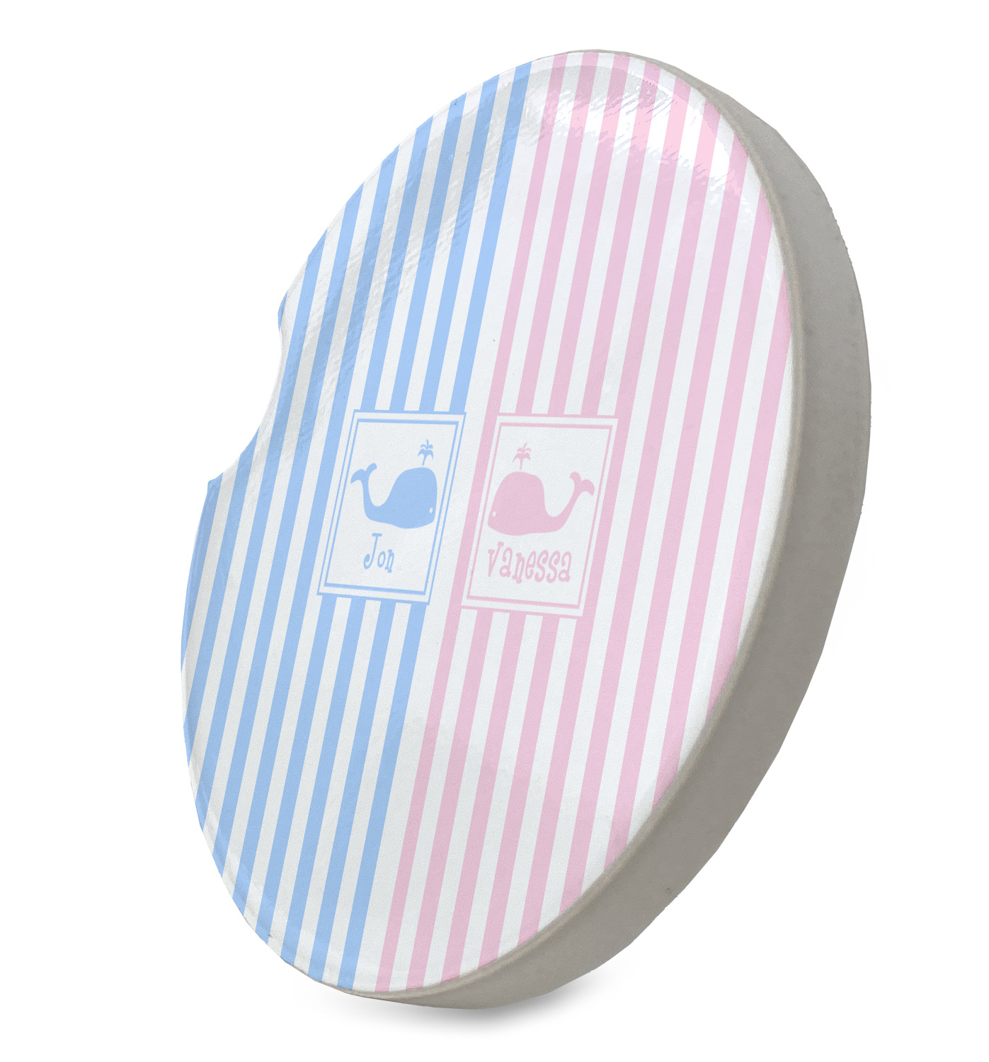 This striped design with whales is the perfect balance between masculine & feminine. It is the design style for sharing! One side is masculine with blue and the other side is feminine with pink.