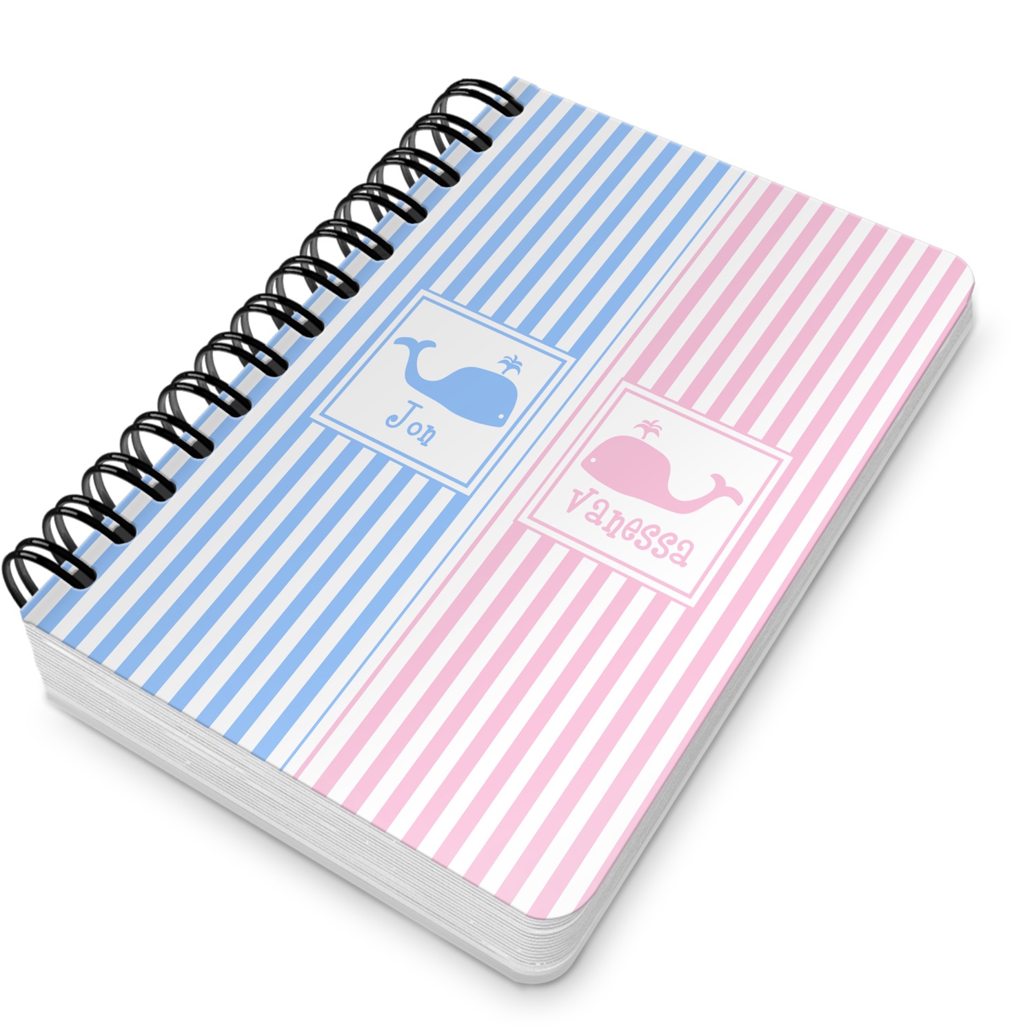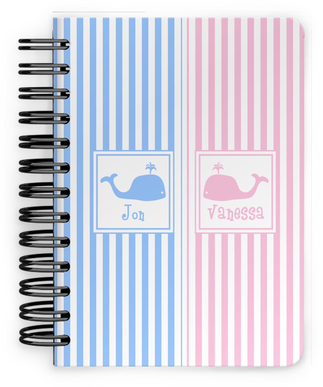 This spiral notebook includes 75 sheets of thick, ruled paper. The front and back of this custom notebook is made of a robust, laminate, plastic covering. We print your personalization on these two panels, underneath a glossy finish, which emphasizes the colors of your design. The two panels and the sheets of paper are held together by a sturdy, black coil. The paper within your bound notebook is perforated for easy, clean tearing.