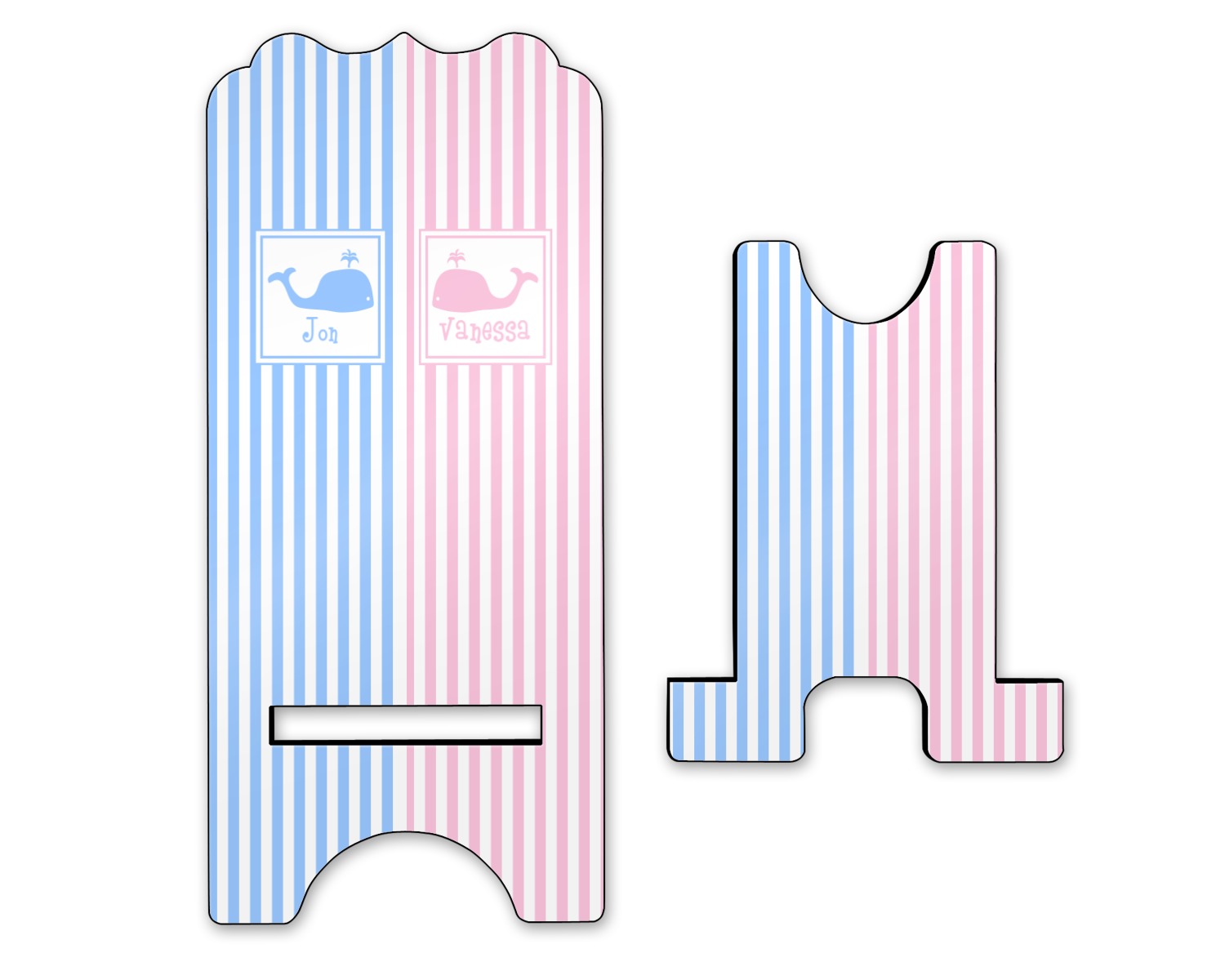 This striped design with whales is the perfect balance between masculine & feminine. It is the design style for sharing! One side is masculine with blue and the other side is feminine with pink.