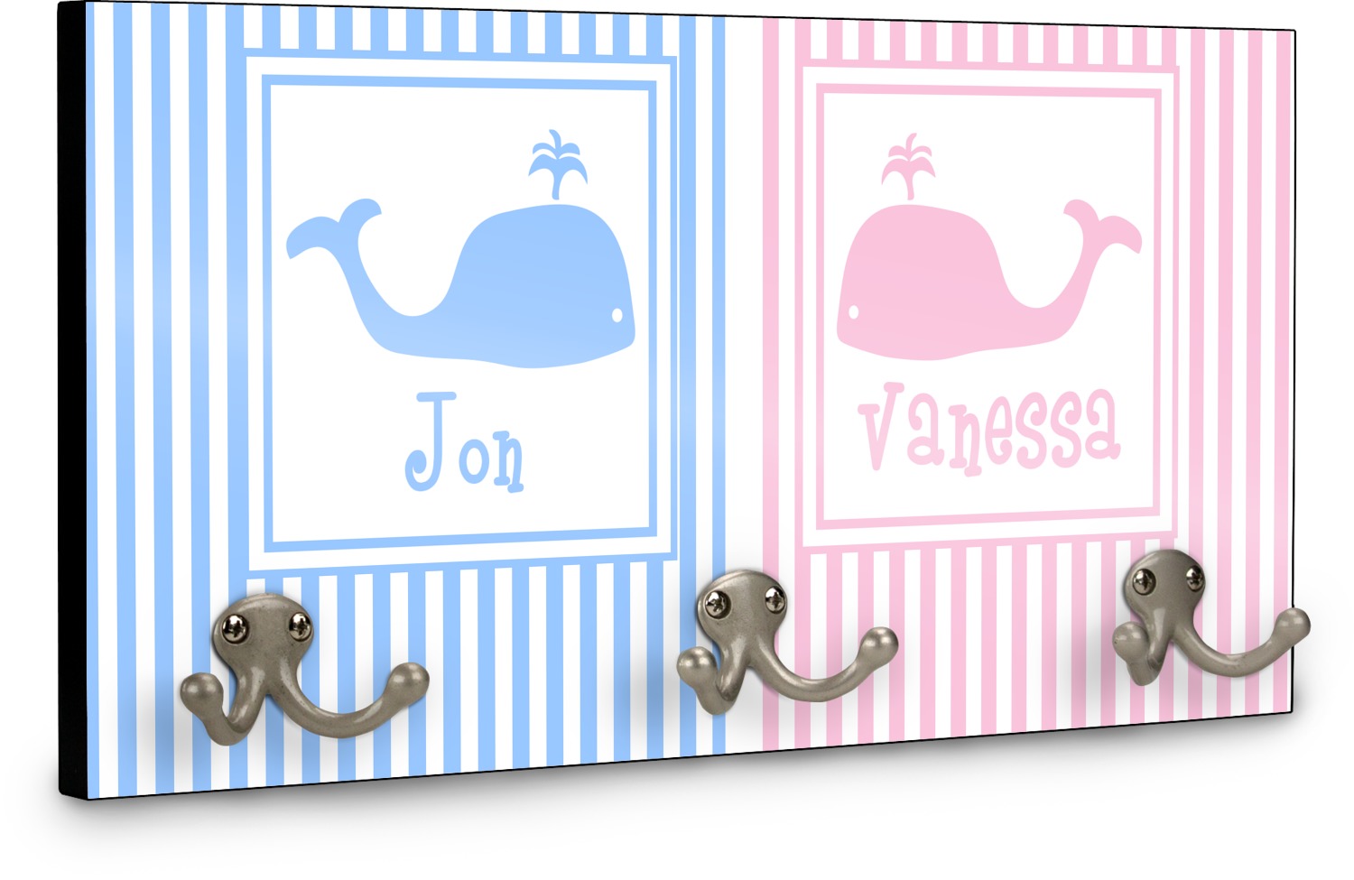 We chose to use whales as our graphics with names for personalization underneath in coordinating colors.