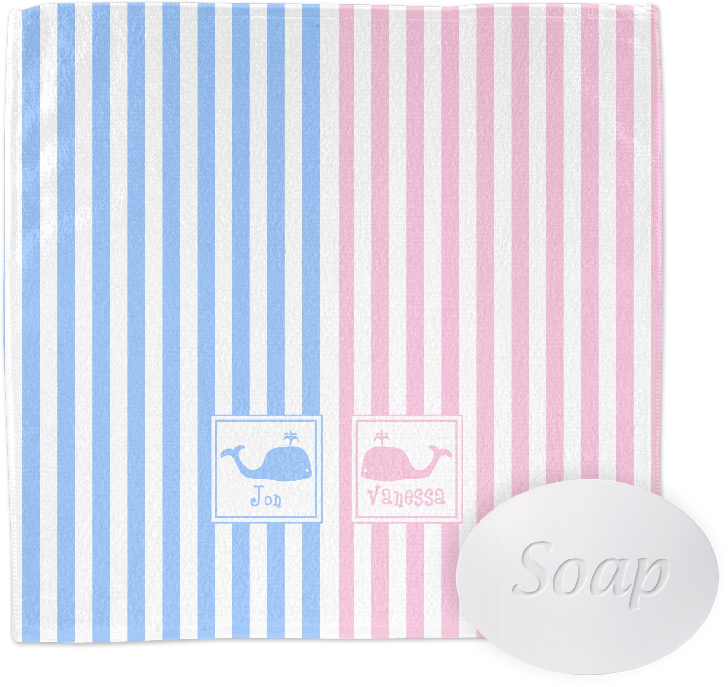 We chose to use whales as our graphics with names for personalization underneath in coordinating colors.