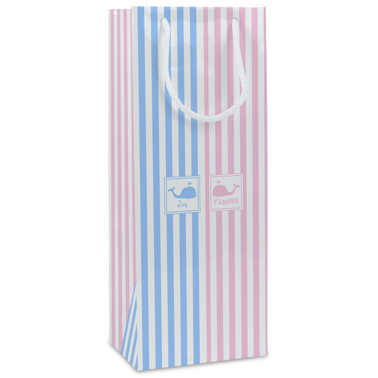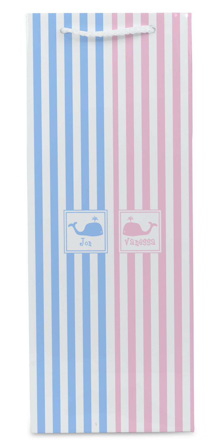 This striped design with whales is the perfect balance between masculine & feminine. It is the design style for sharing! One side is masculine with blue and the other side is feminine with pink.