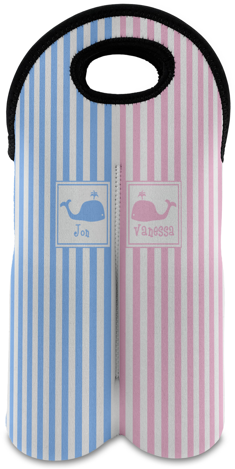 This striped design with whales is the perfect balance between masculine & feminine. It is the design style for sharing! One side is masculine with blue and the other side is feminine with pink.
