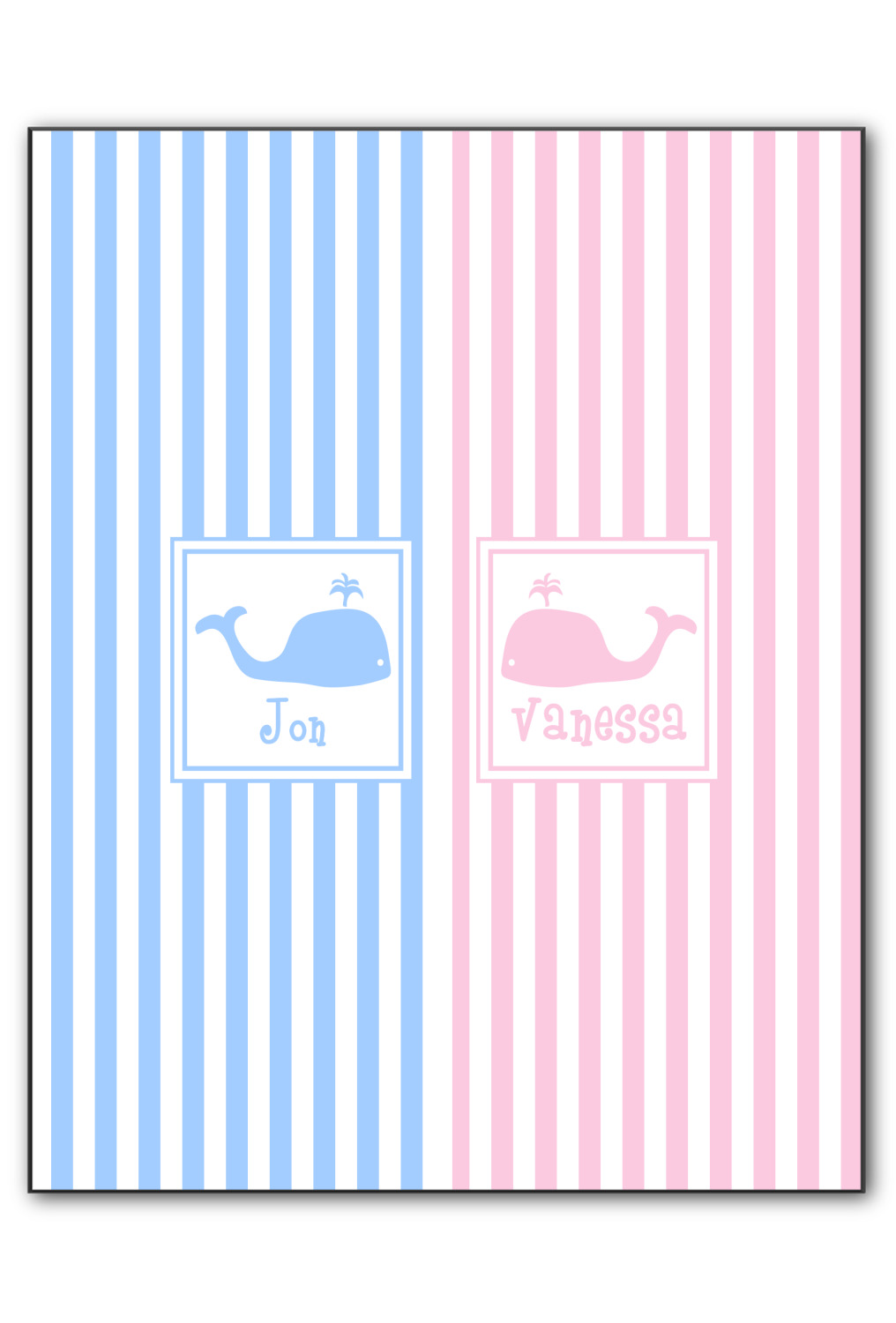 We chose to use whales as our graphics with names for personalization underneath in coordinating colors.