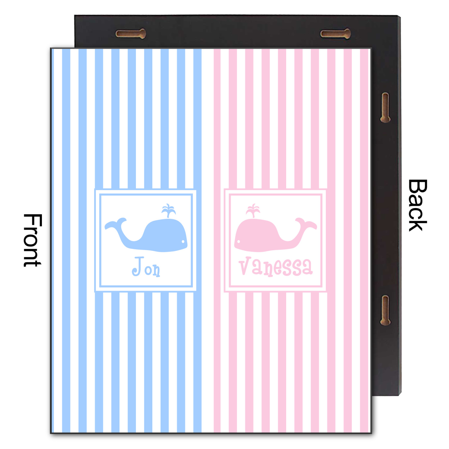We chose to use whales as our graphics with names for personalization underneath in coordinating colors.