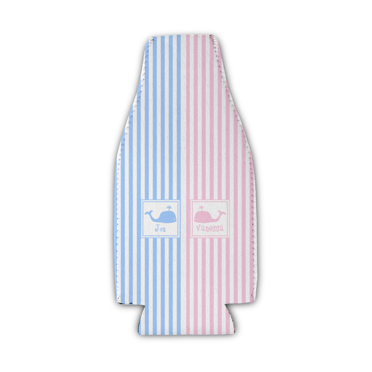 This striped design with whales is the perfect balance between masculine & feminine. It is the design style for sharing! One side is masculine with blue and the other side is feminine with pink.