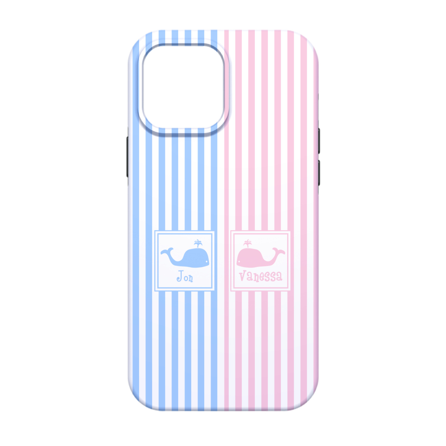 This striped design with whales is the perfect balance between masculine & feminine. It is the design style for sharing! One side is masculine with blue and the other side is feminine with pink.