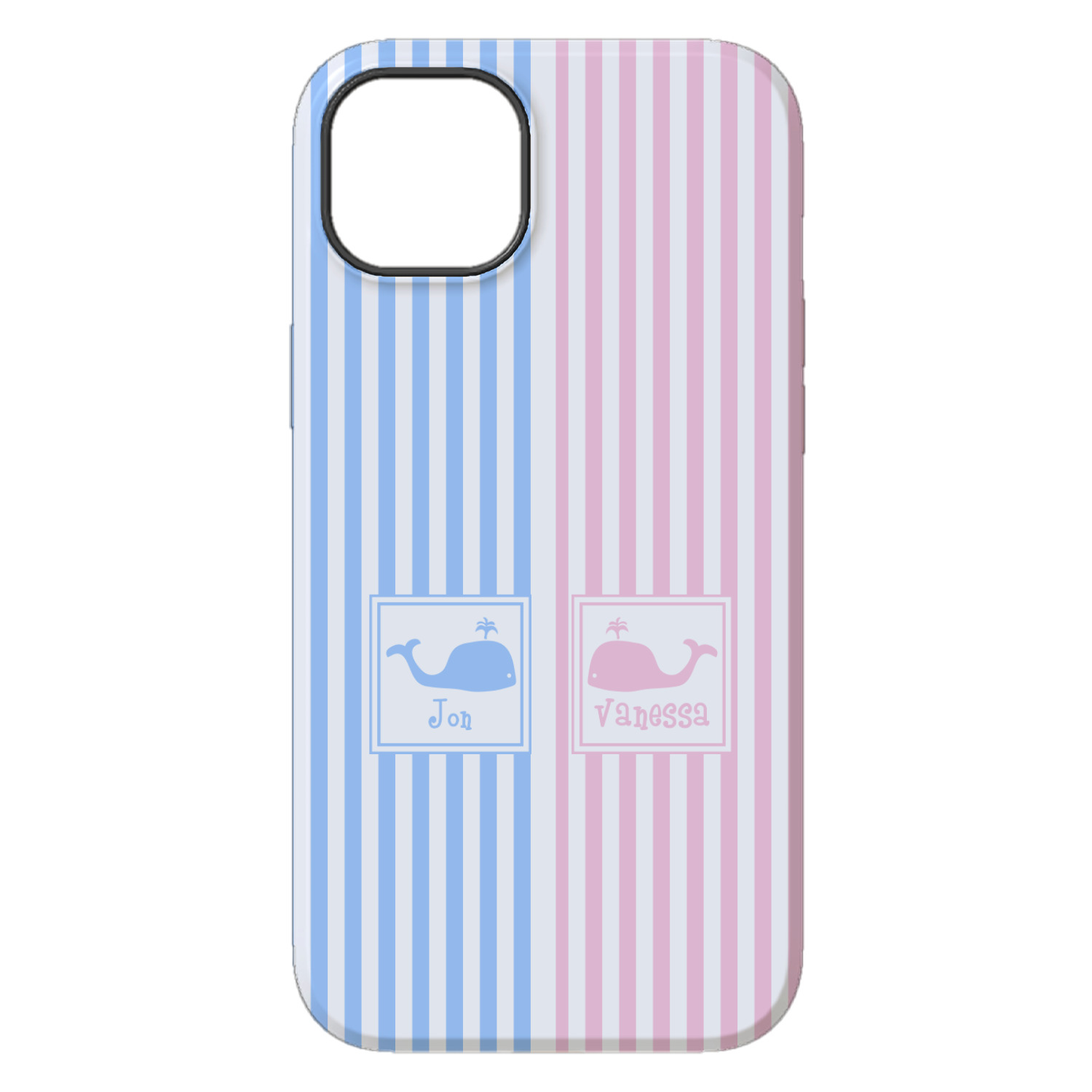This striped design with whales is the perfect balance between masculine & feminine. It is the design style for sharing! One side is masculine with blue and the other side is feminine with pink.