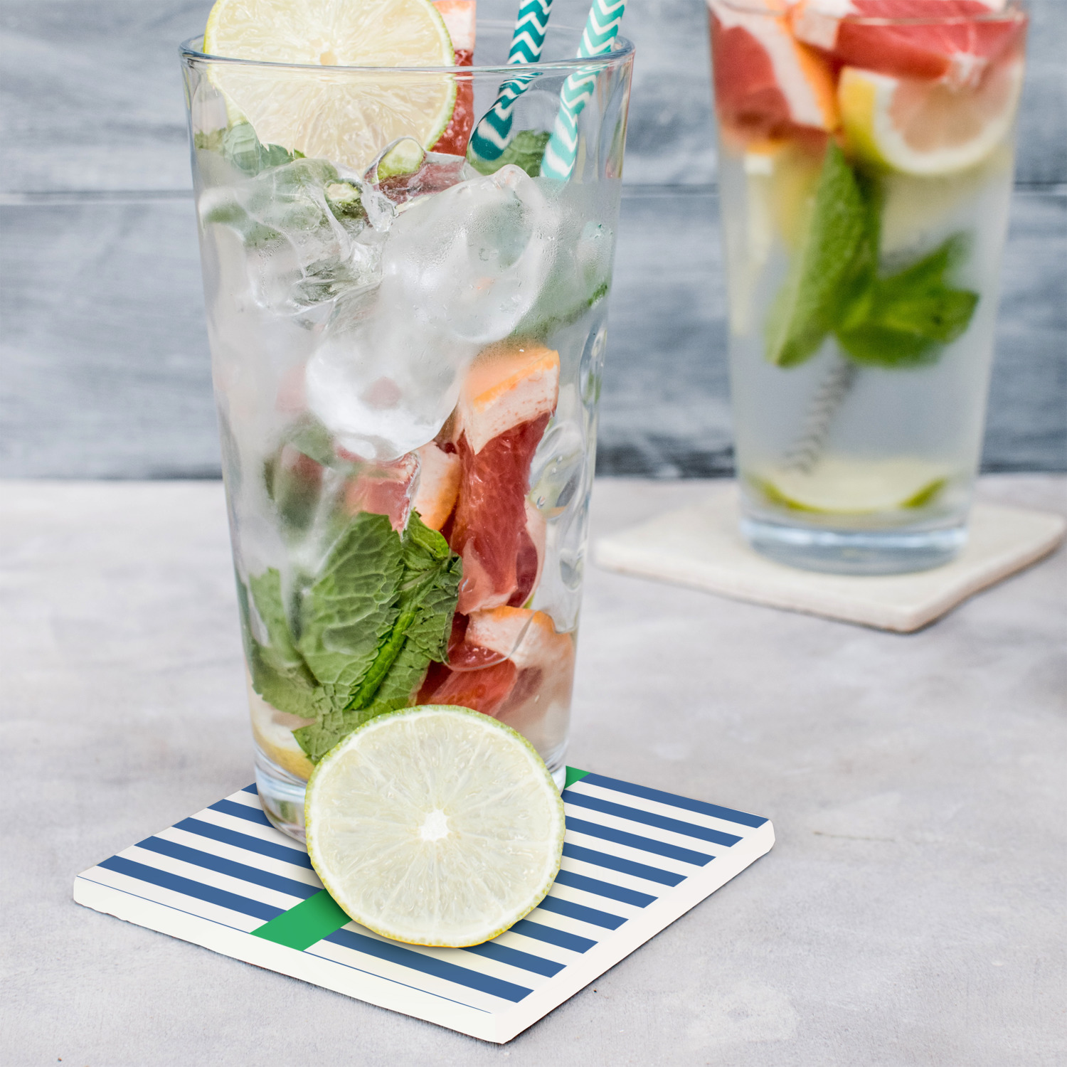 These customized stone coasters are perfect for use with beverages that are served in drinkware that "sweat". When cocktails, sodas, iced tea, water, etc. are served with ice in a regular glasses (non insulated glasses), they release condensation that drips down the outside of the glasses.