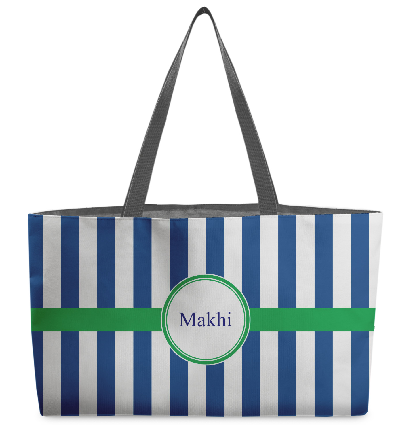 These beach totes are handmade here in the USA. Fabric is printed with your design. The tote is then sewn from the fabric pieces, lining and handles added.