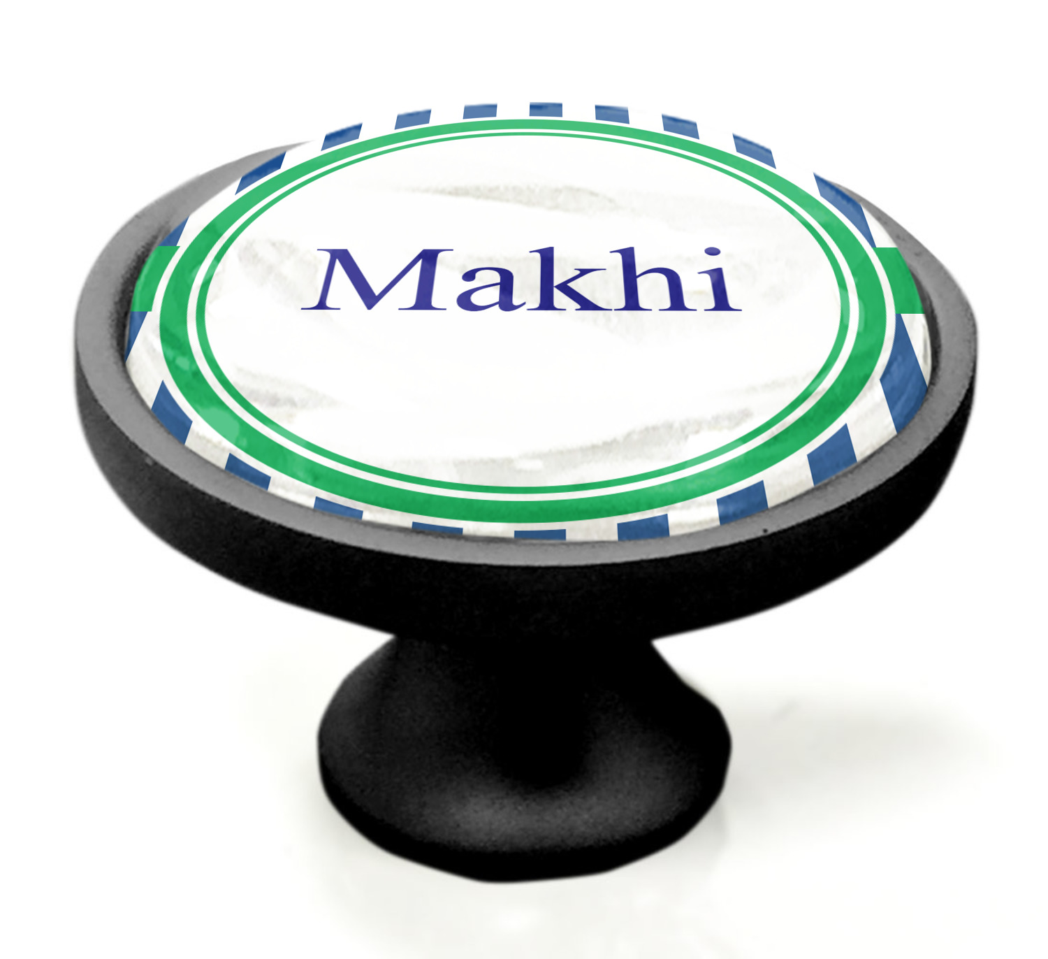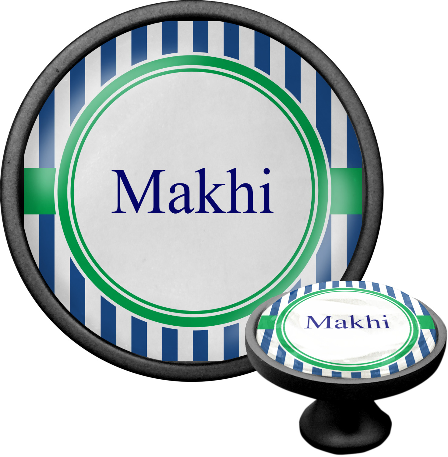 We sell these cabinet pulls in two different colors to better match your room's color scheme. We offer an oil-rubbed bronze base that is black in color, and a satin nickel option, which has a silver color. Your design is displayed across a high gloss vinyl insert that is placed on top of these cabinet handles. We then place a 1 inch thick glass cabochon atop the design, which seals the cabinet knob and makes the colors of your customization stand out. These custom cabinet knobs are approximately 1.3 inches in diameter. Your purchase includes a 1 inch screw that can be used to mount the knob to any cabinet in your home.