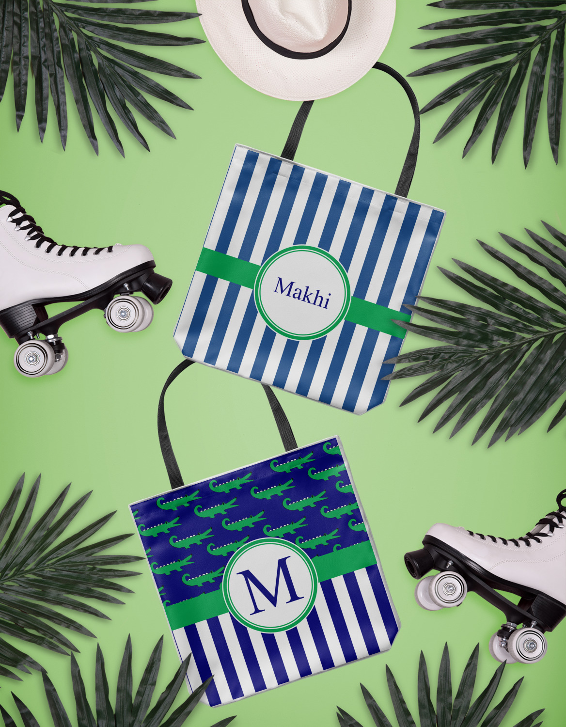 Our all purpose Canvas Totes bags are available in 3 sizes and in hundreds of different designs with many different prints & patterns, which are available in many different colors. You can customize the labels, the ribbons, the personalization styles and of course the fonts.