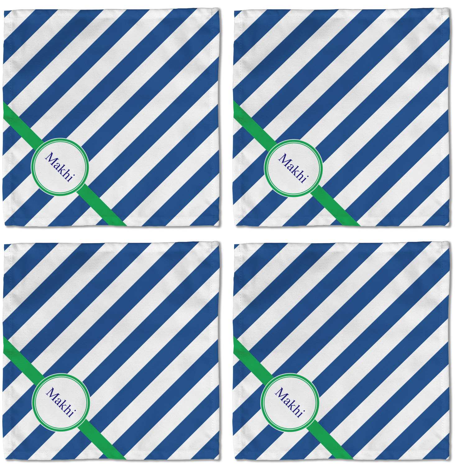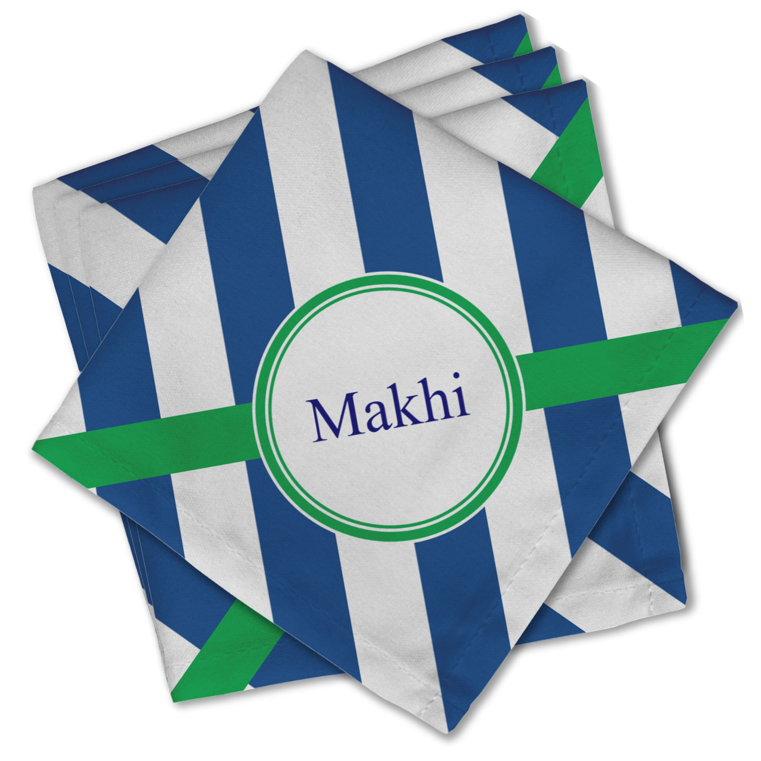 Each customizable cloth napkin is a polyester material guaranteed for long-term use. Since our napkins are cloth, it serves as a great reusable and eco-friendly dining decor. We sell personalized napkins individually or as a set of 4! Print your own unique design on all four napkins, or create four individual designs for each napkin! We offer two different napkin sizes - Cocktail napkins (approx. 10 x 10) and Dinner napkins (approx. 20 x 20). We print your design on one side, perfect for displaying your custom designed lunch napkins in any fold or table setting!