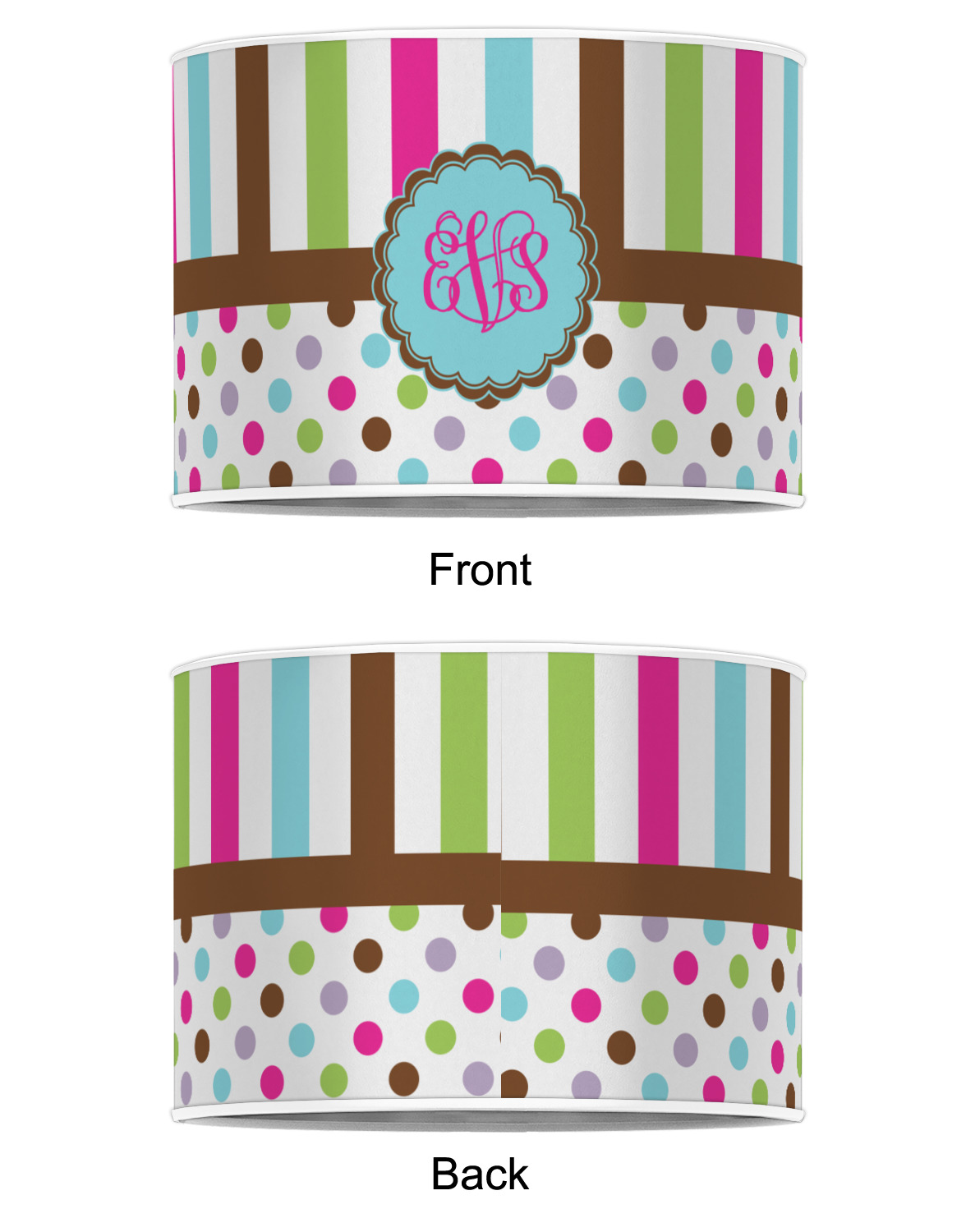 Our customized lamp shades also come in 3 different sizes: 8", 12" and 16", measuring at 8" in diameter by 6" tall, 12" in diameter by 8" tall, and 16" in diameter by 10" tall, respectively.
