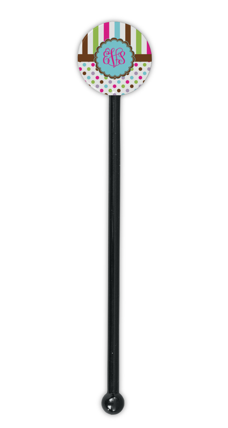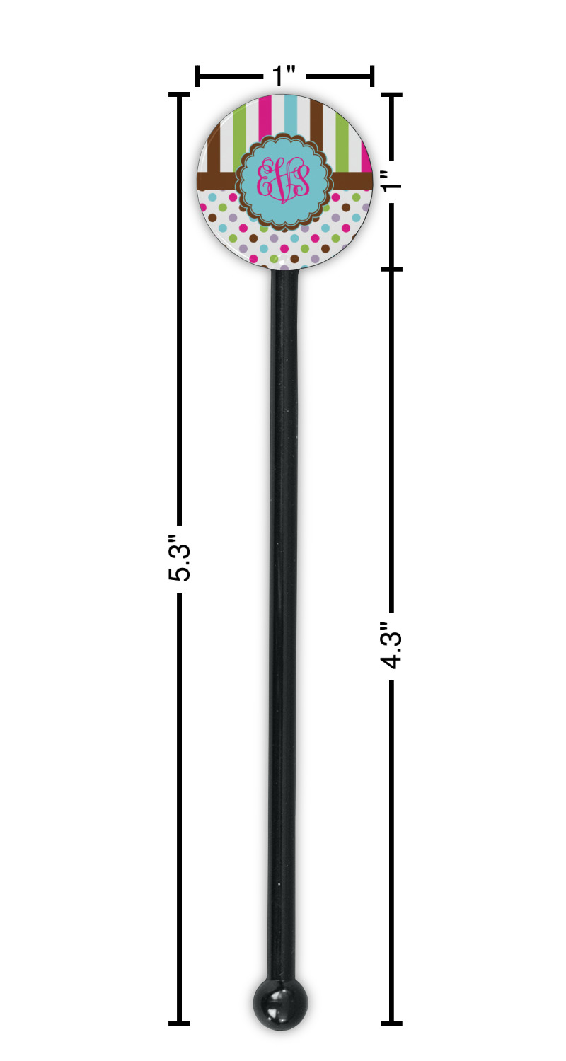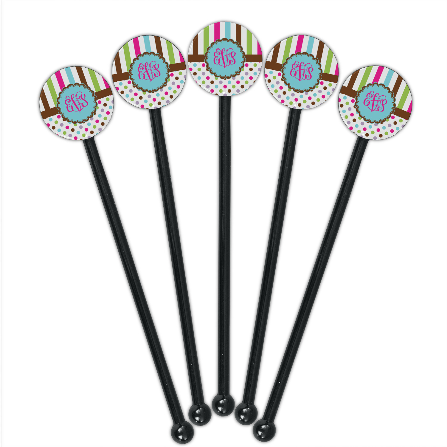 Shape + Symbol Designs for 5.5" Round Plastic Stir Sticks - Black - Double-Sided
