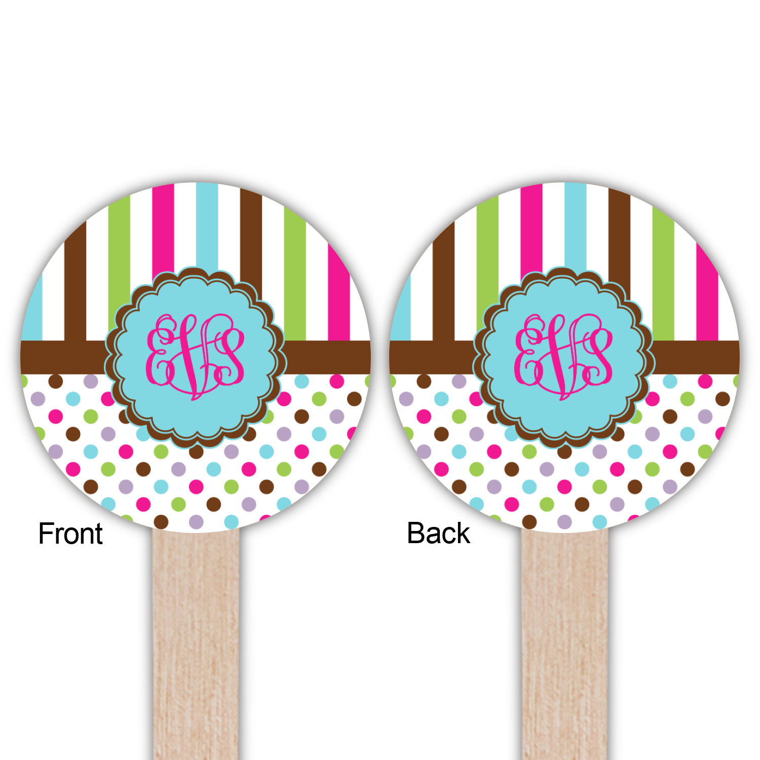 Shape + Symbol Designs for 6" Round Wooden Food Picks - Double-Sided