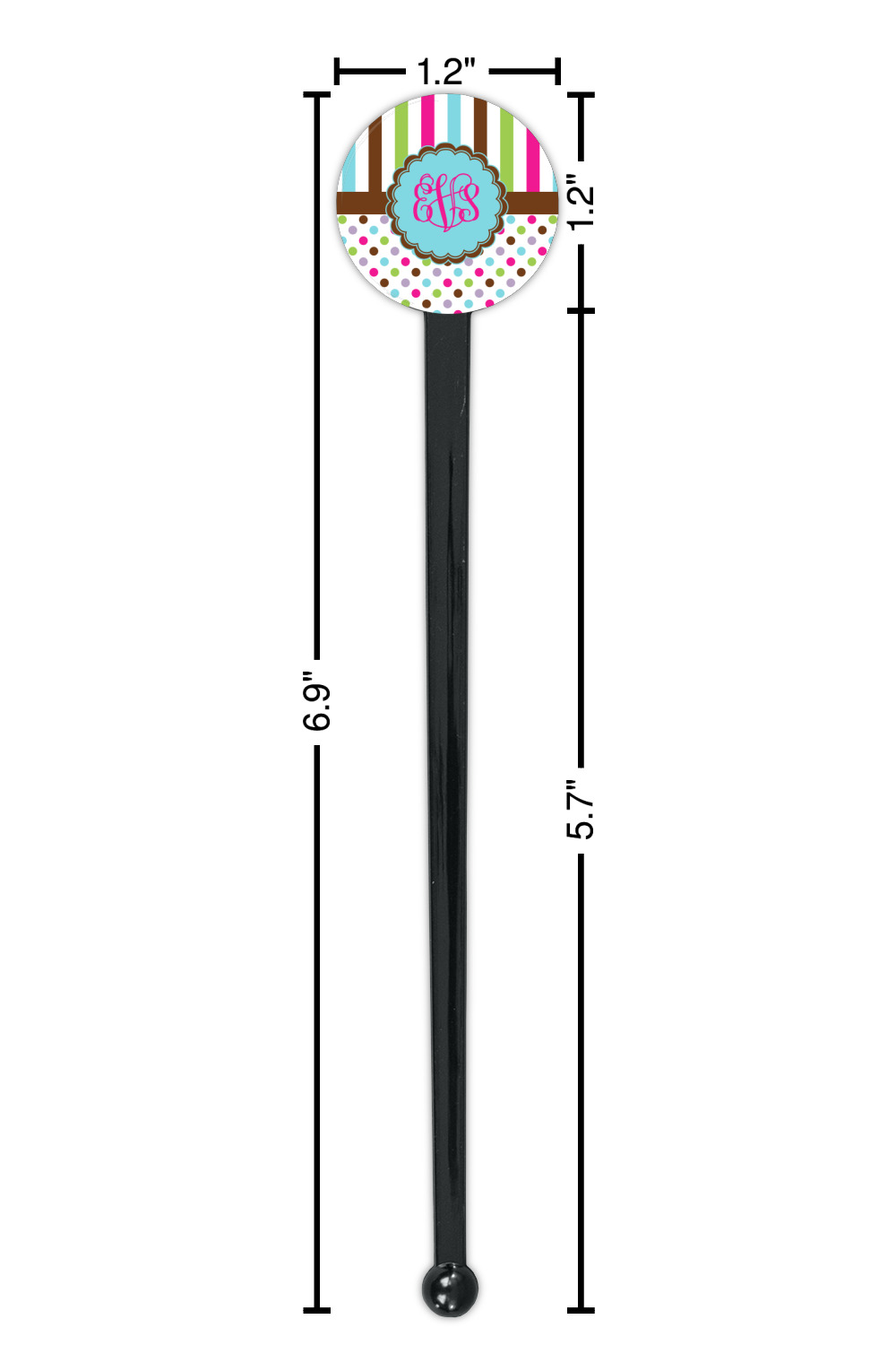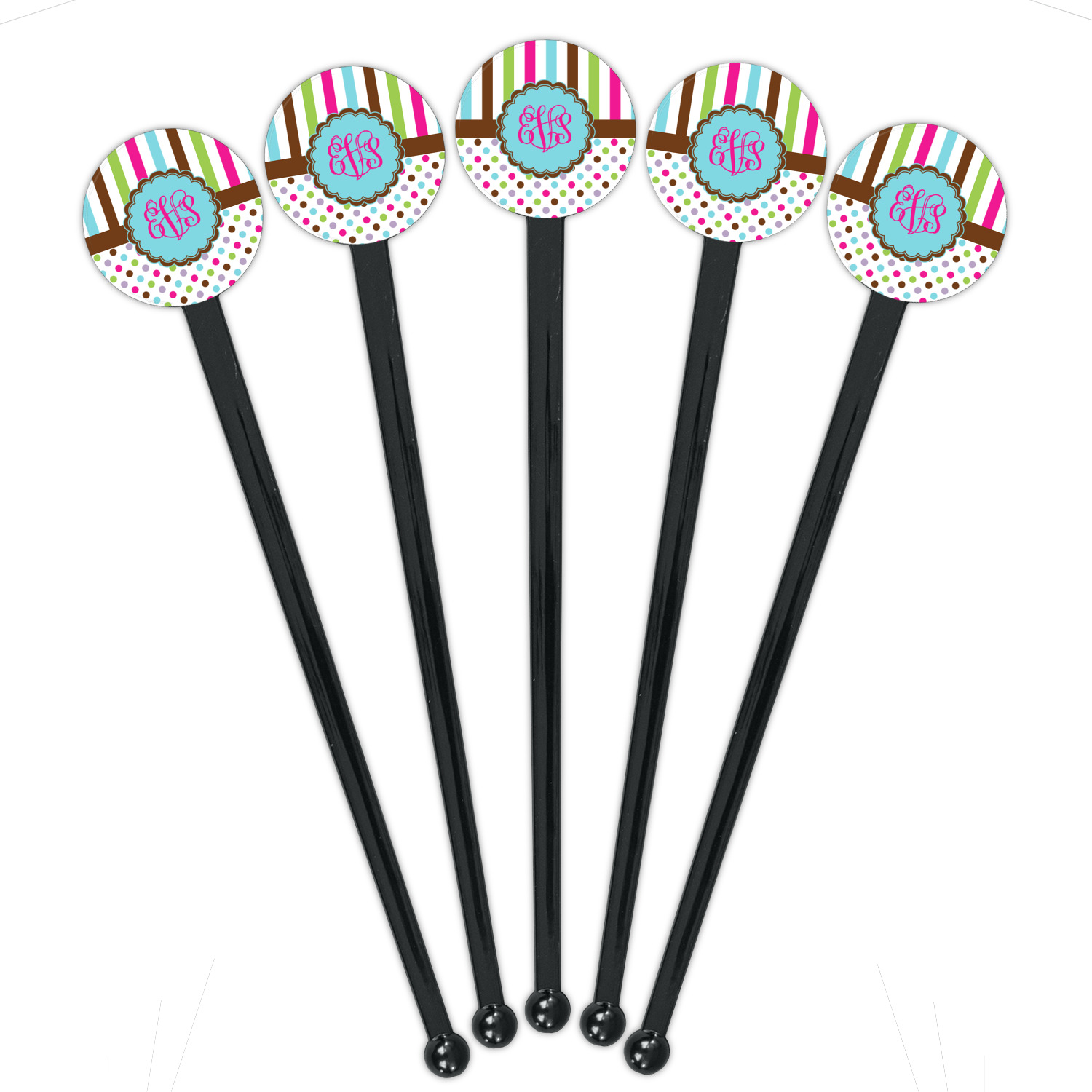 Shape + Symbol Designs for 7" Round Plastic Stir Sticks - Black - Double-Sided
