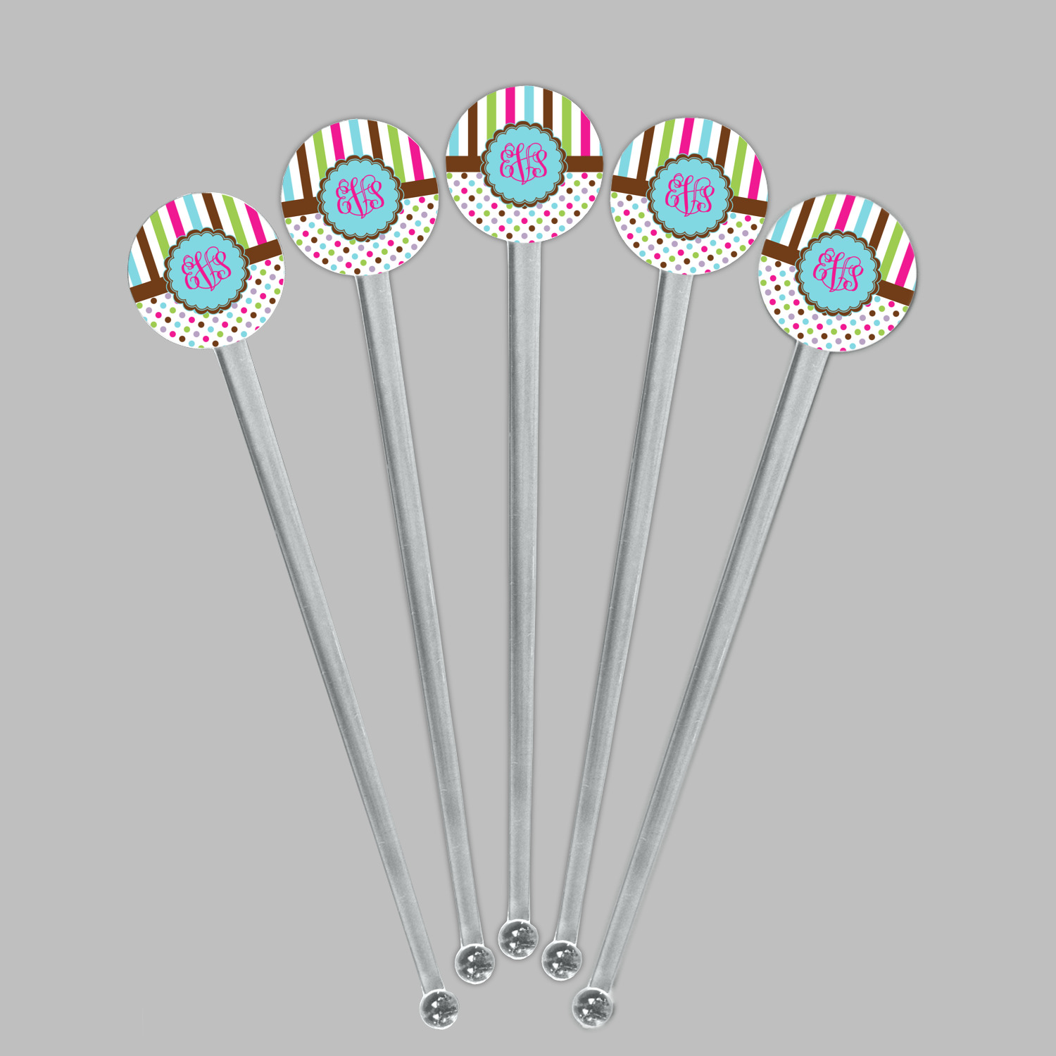 Shape + Symbol Designs for 7" Round Plastic Stir Sticks - Clear