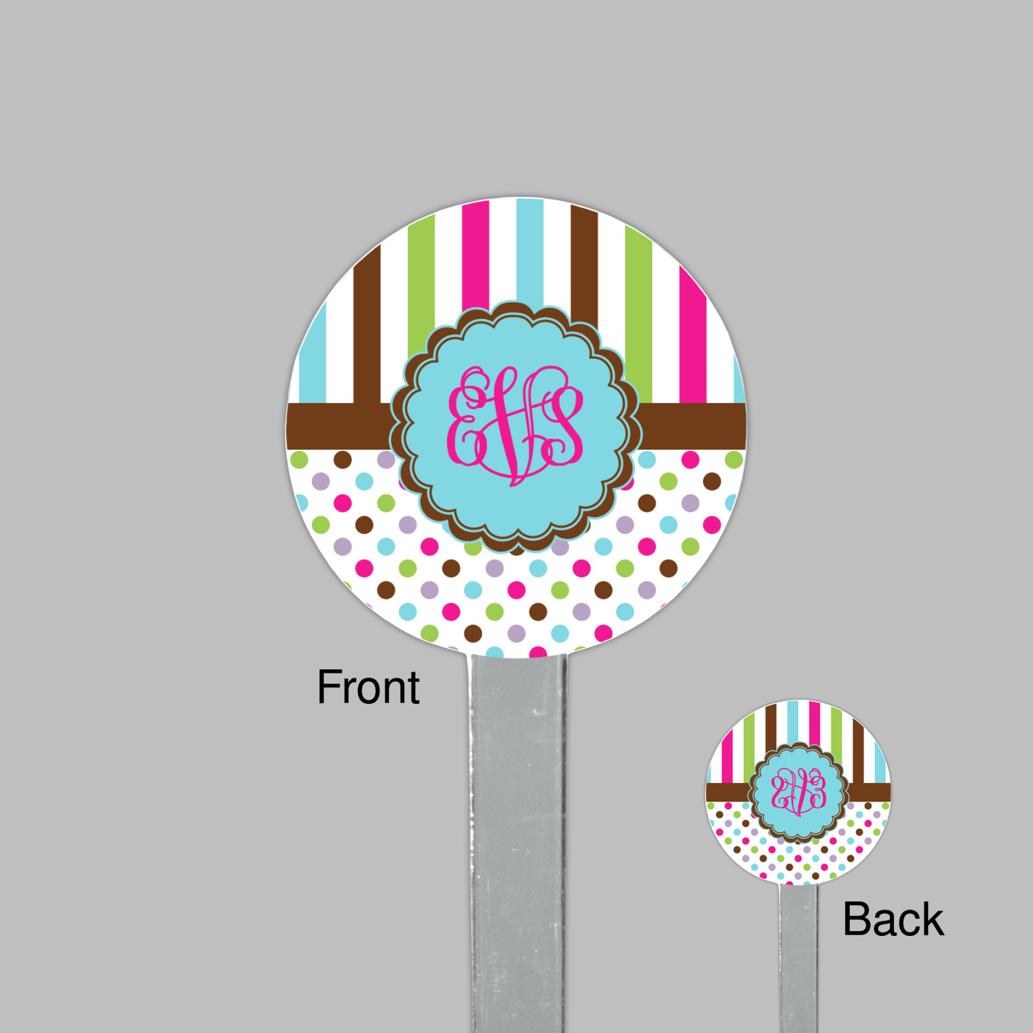 A cotton candy blue scalloped label trimmed in chocolate pulls the design together. Add personalization of your choice to add that cherry on the top to this design.