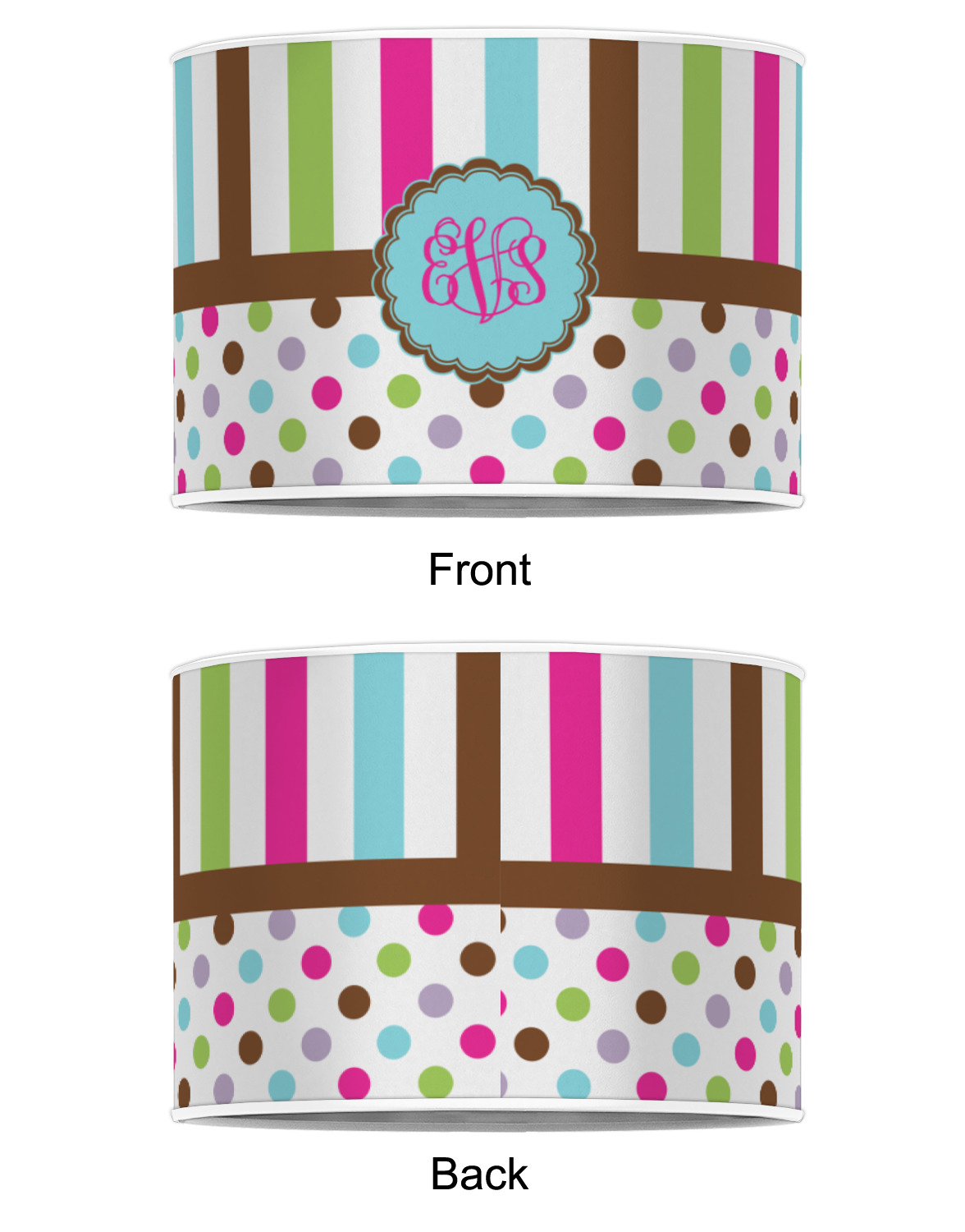 Our customized lamp shades also come in 3 different sizes: 8", 12" and 16", measuring at 8" in diameter by 6" tall, 12" in diameter by 8" tall, and 16" in diameter by 10" tall, respectively.