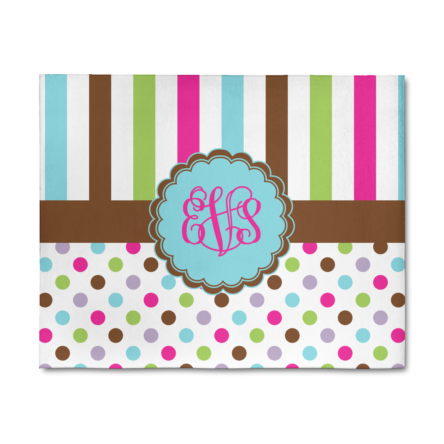I scream, you scream, we all scream for ice cream! Yummy ice cream colors inspired this design. Chocolate, strawberry, vanilla, cotton candy blue, and lime sherbert are all represented. The top is a traditional striped pattern. On the bottom the same colors are sprinkled about. A lovely chocolate band separates the two patterns.