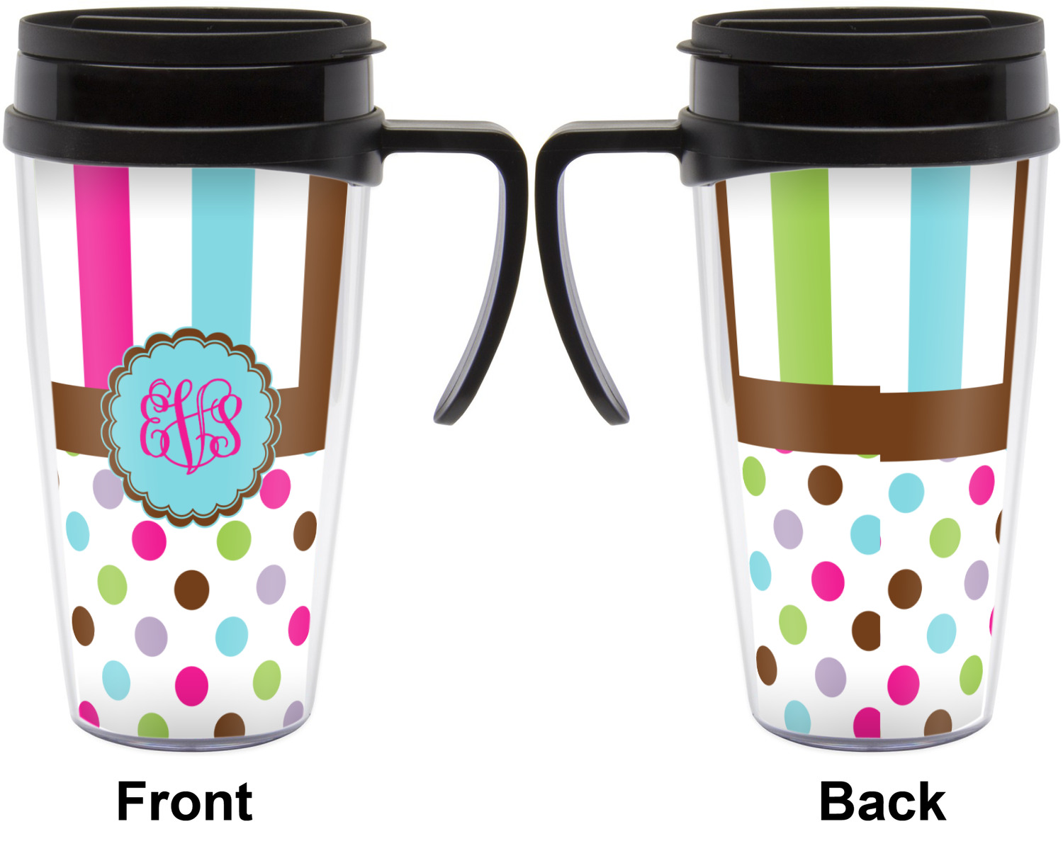 Keep your drink secure while on your daily commute with one of our personalized travel mugs! These travel mugs will add a splash of color and creativity to your kitchen counter-top, car cup holder, office desk, or wherever you choose to place them! With these custom mugs, you'll never have to settle for a boring, run-of-the-mill travel mug.