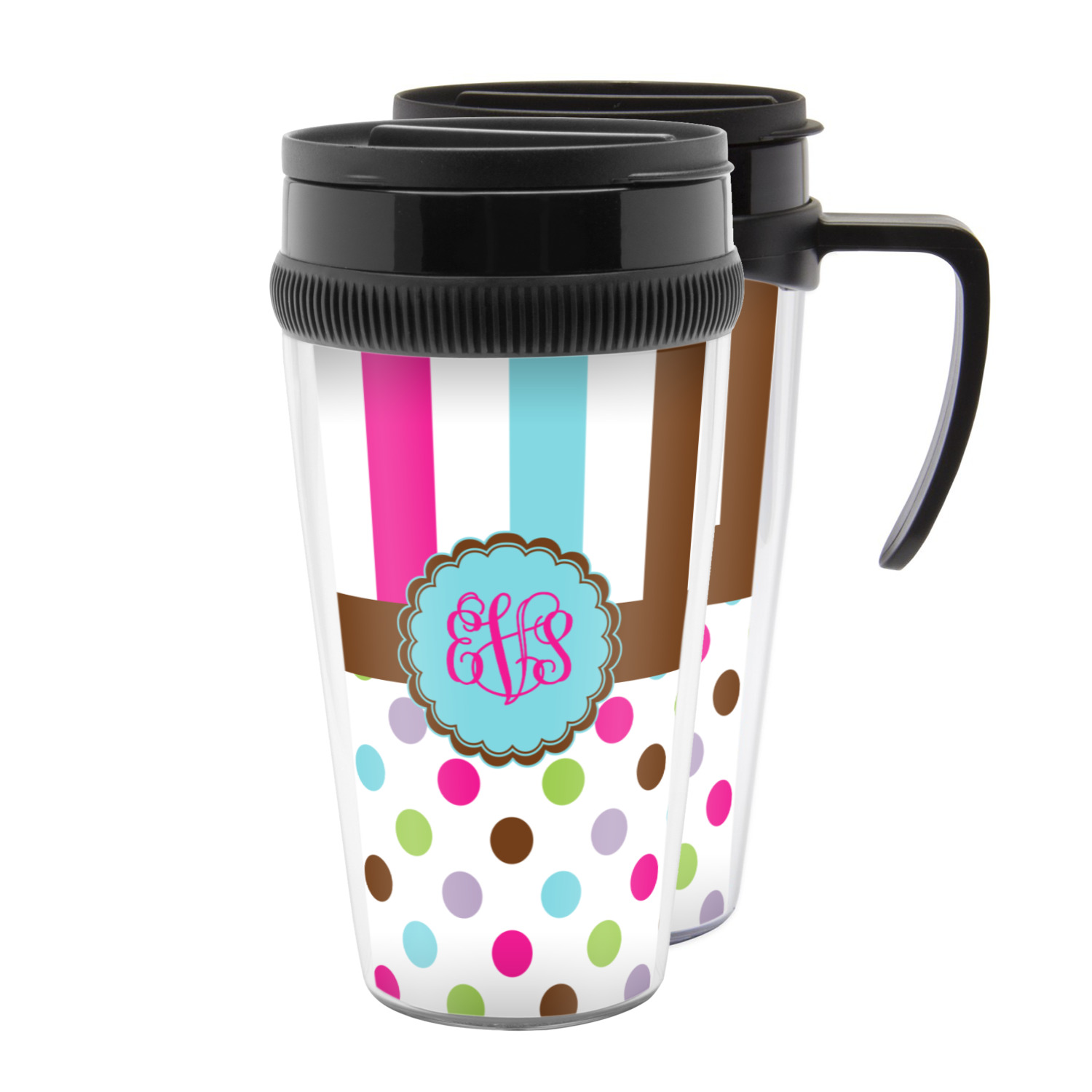 Keep your drink secure while on your daily commute with one of our personalized travel mugs! These travel mugs will add a splash of color and creativity to your kitchen counter-top, car cup holder, office desk, or wherever you choose to place them! With these custom mugs, you'll never have to settle for a boring, run-of-the-mill travel mug.