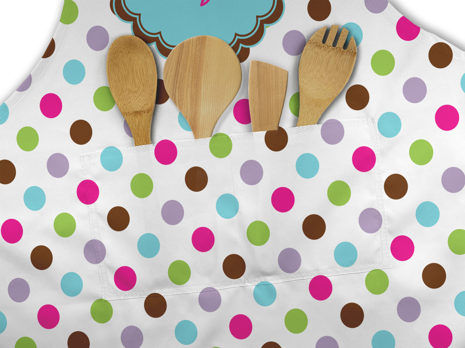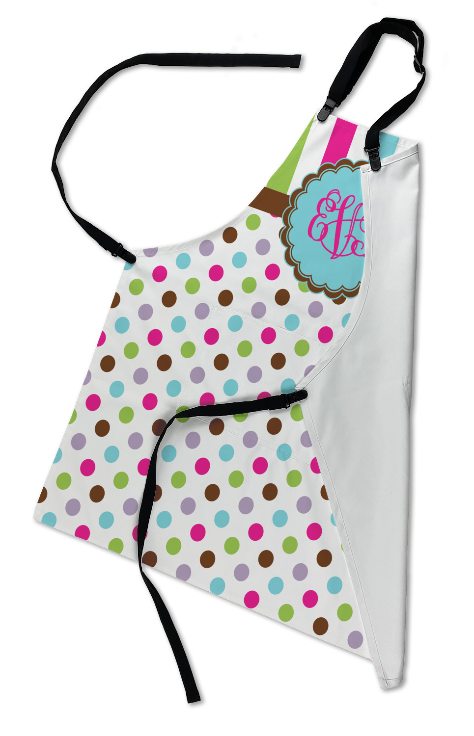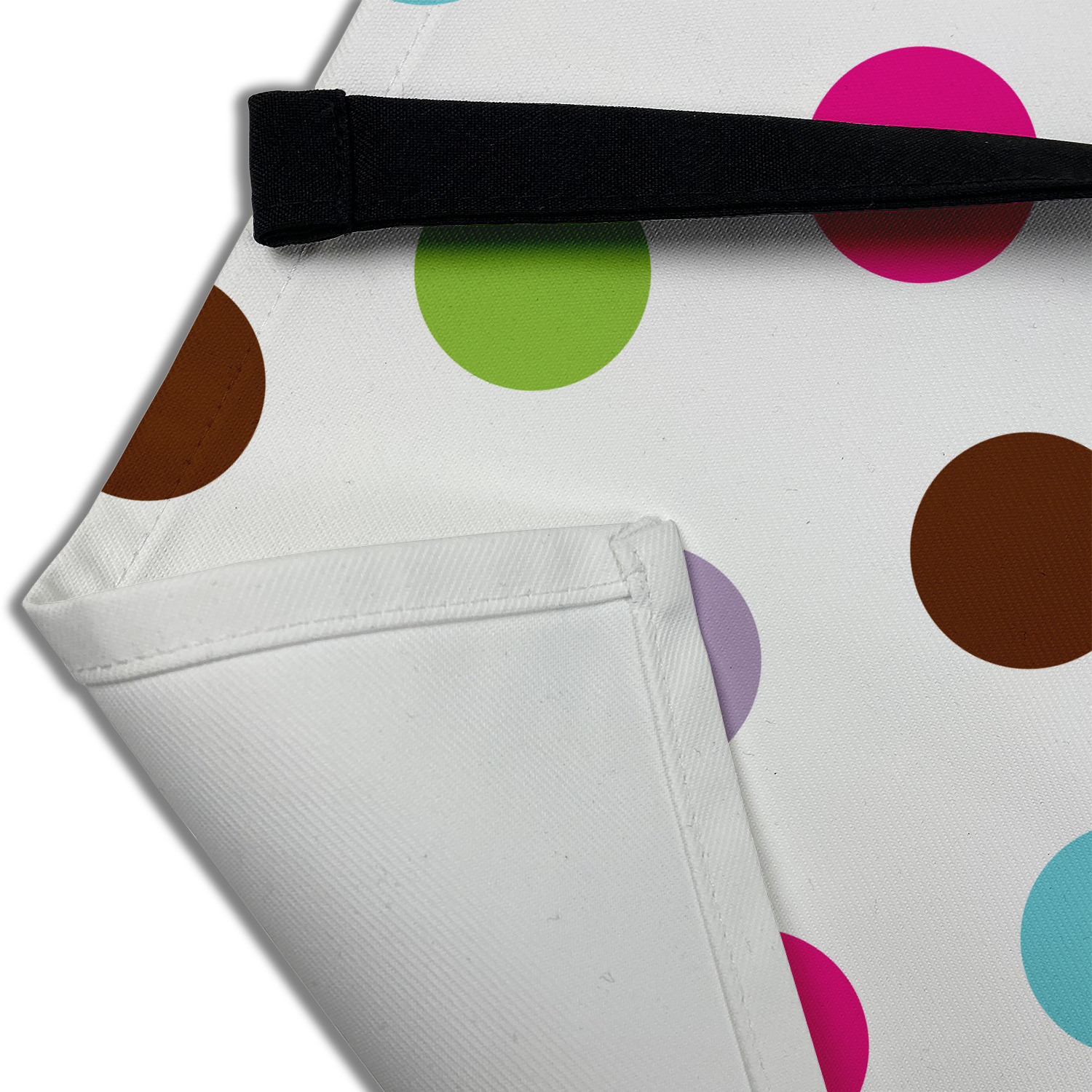 Our aprons are a lightweight yet durable polyester material. We offer two styles of aprons, one without pockets and one with two pockets adorning the center near the waistline. Each apron is one size* and comes with adjustable straps for both the neckline and waist. We print your custom design on the front of the apron to display your creativity!