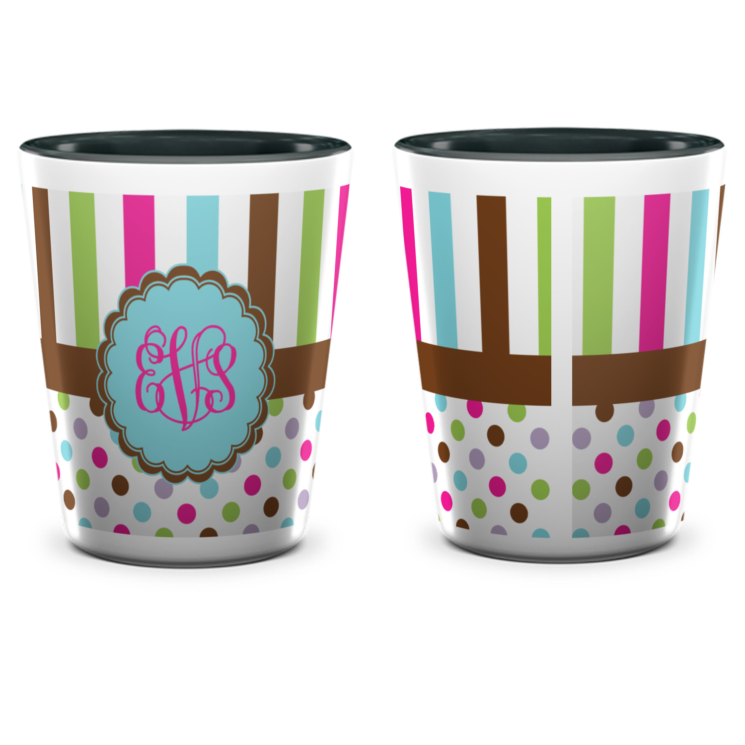 Made from ceramic these shot glasses are printed in full color with the design of your choice. These are a standard 1.5oz size and stand 2.25" tall. Available in a full white ceramic or a two-tone with a black color inside the shot glass. Buy a single or a set of 4, all of which can be designed separately to get you just what you want and need.
