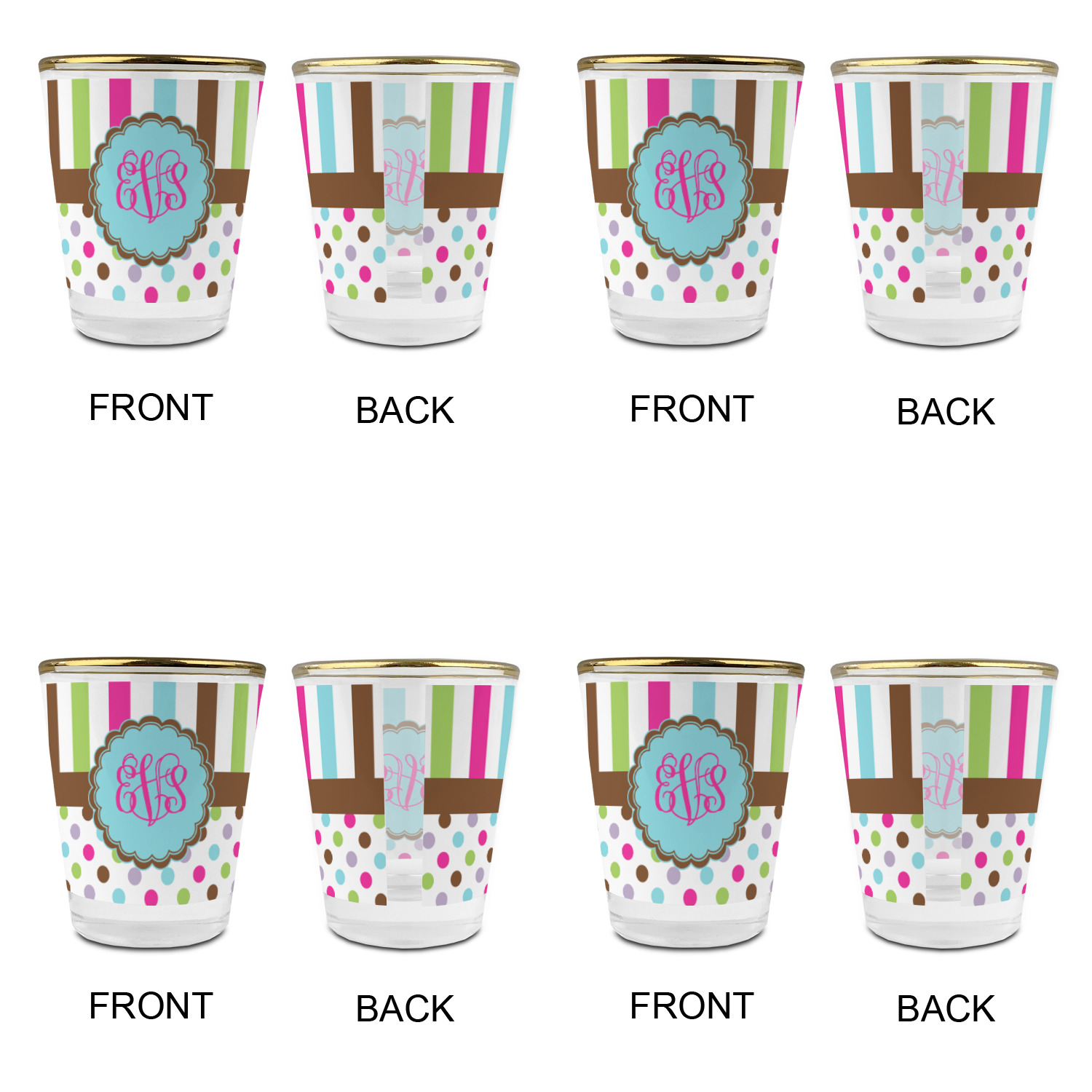 Made with frosted glass, these shot glasses are printed in full color with the design of your choice. They are a standard 1.5oz shot glass and are 2.4" tall. The print is wrapped around the shot glass in a full wrap and boldly displays your customization.