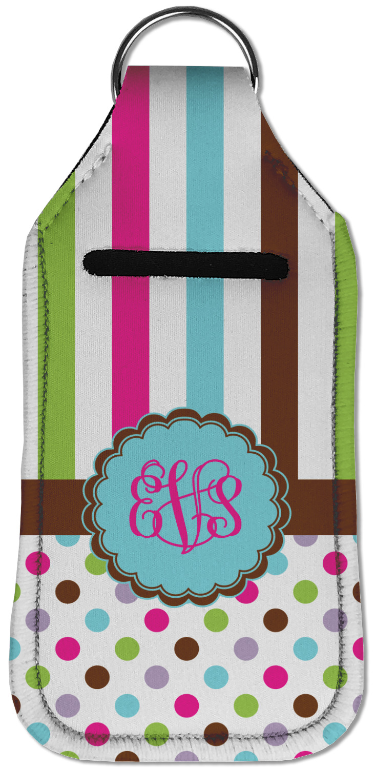 Each hand sanitizer holder comes with its own empty travel-sized, refillable hand sanitizer sure to fit snug in your customized sanitizer case! Our hand sanitizer cases are a durable, yet soft neoprene material sure to last any daily activities or travel agenda. Customize and personalize a hand sanitizer bottle holder with one of our two sizes - small (4.25" x 2.25") or large (5.5" x 2.5"). Each travel sanitizer holder comes with a keyring for attachment on bags, keys, or more!