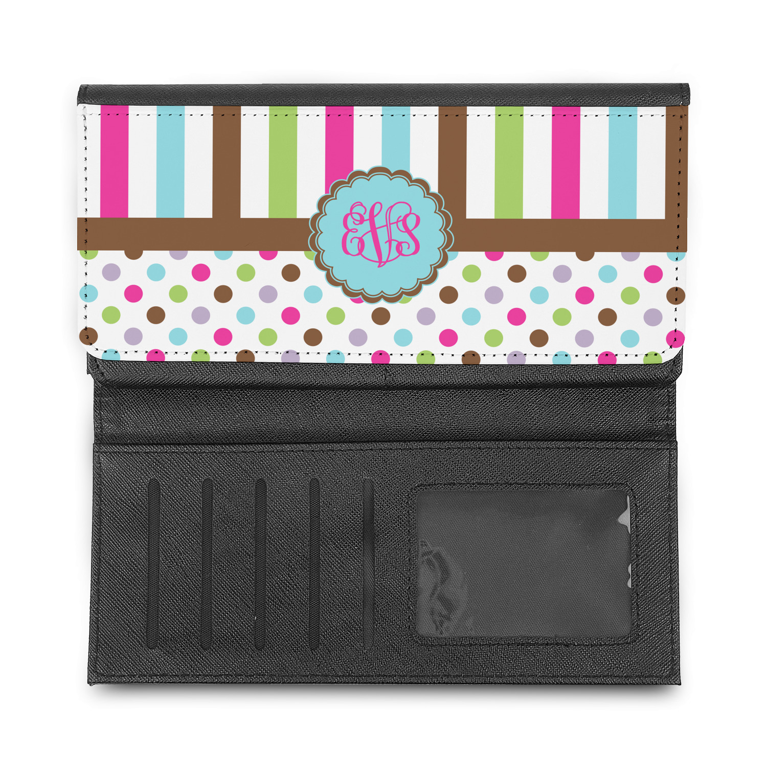 These leatherette ladies wallets can be customized with any one of our patterns (many patterns are available in multiple colors). Of course adding personalization (free) is your choice - you can include a monogram (interlocking is my favorite), a name, or one of our beautiful name and initial combinations.