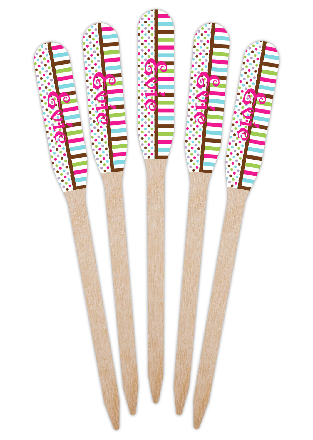 Our paddle style food & drink picks are available in 2 print styles - single sided and double sided.