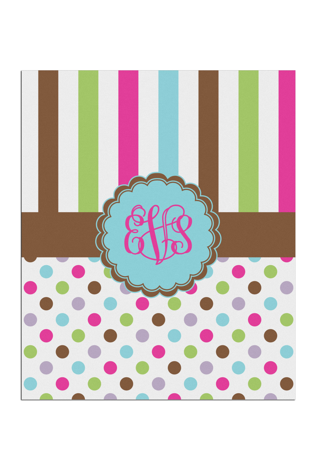 I scream, you scream, we all scream for ice cream! Yummy ice cream colors inspired this design. Chocolate, strawberry, vanilla, cotton candy blue, and lime sherbert are all represented. The top is a traditional striped pattern. On the bottom the same colors are sprinkled about. A lovely chocolate band separates the two patterns.