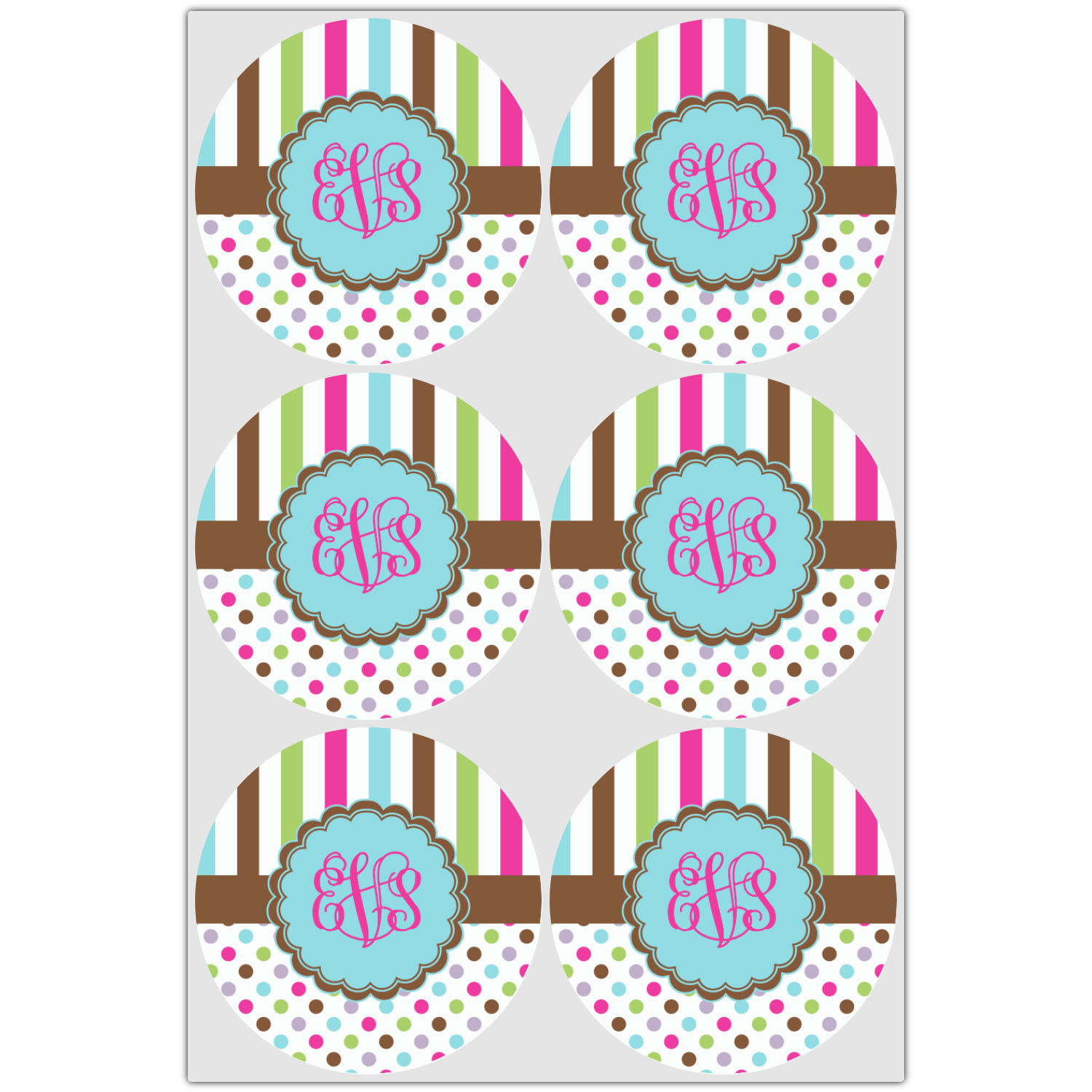 A cotton candy blue scalloped label trimmed in chocolate pulls the design together. Add personalization of your choice to add that cherry on the top to this design.
