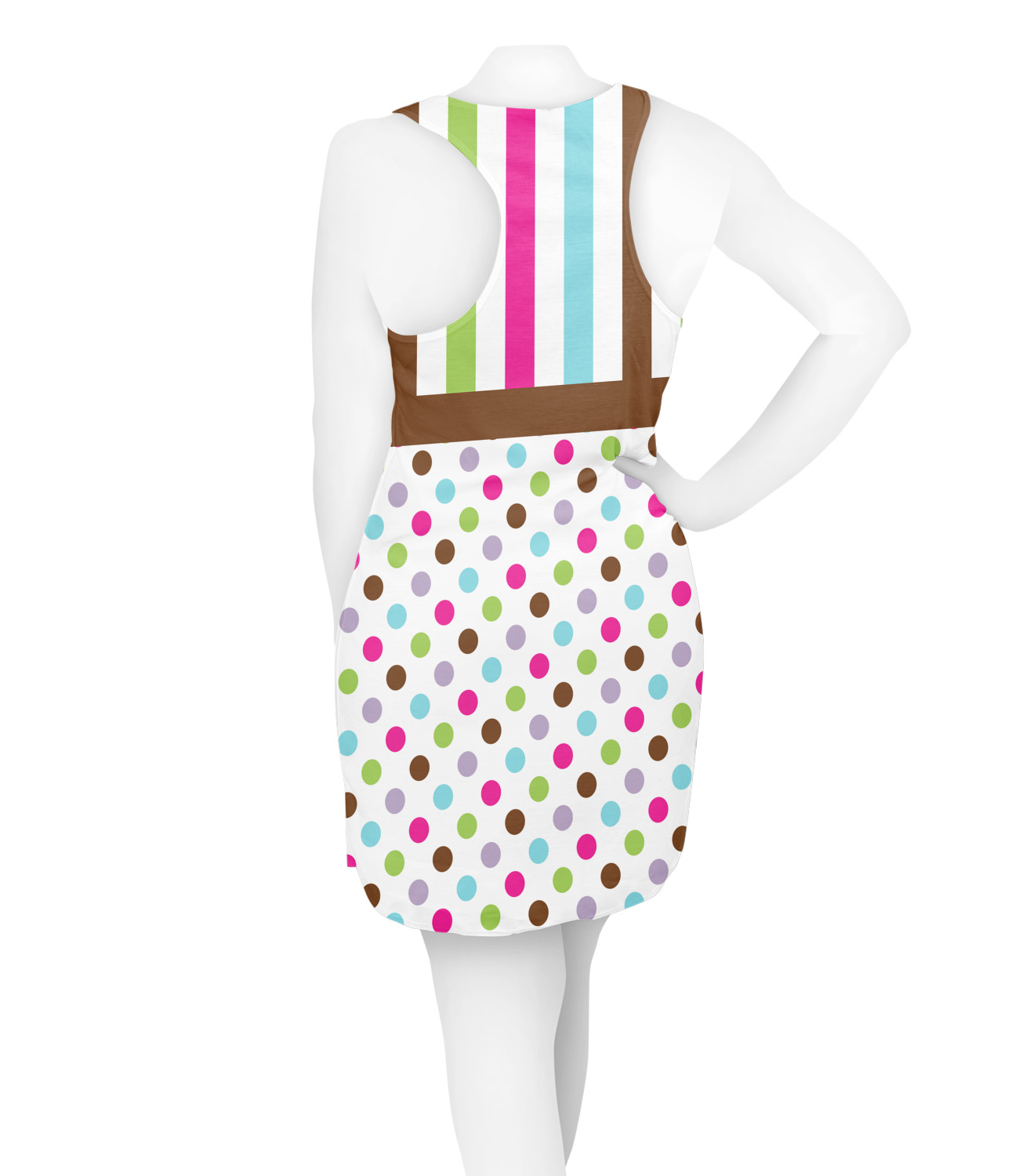 Ever want to dress up a little, but don't feel like wearing an uncomfortable dress? This racerback dress is the perfect thing! It's comfortable and adorable. You can wear it alone or with your favorite leggings. The best part? It's personalized!