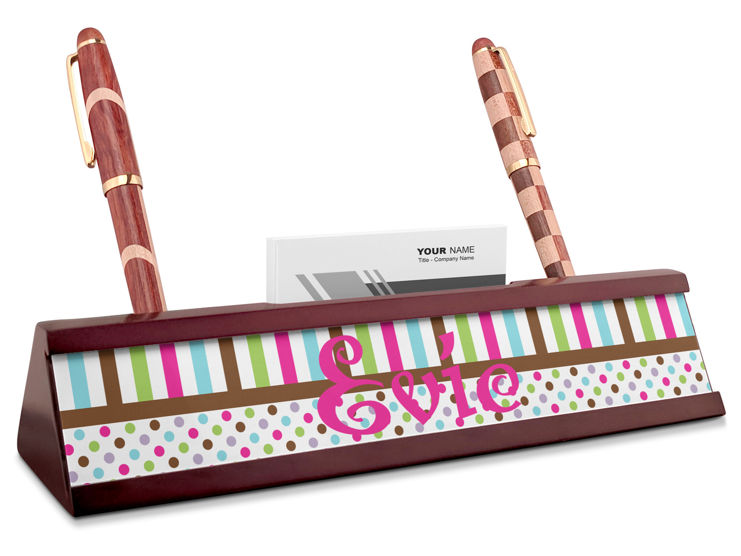 Shape + Symbol Designs for Red Mahogany Nameplates with Business Card Holder