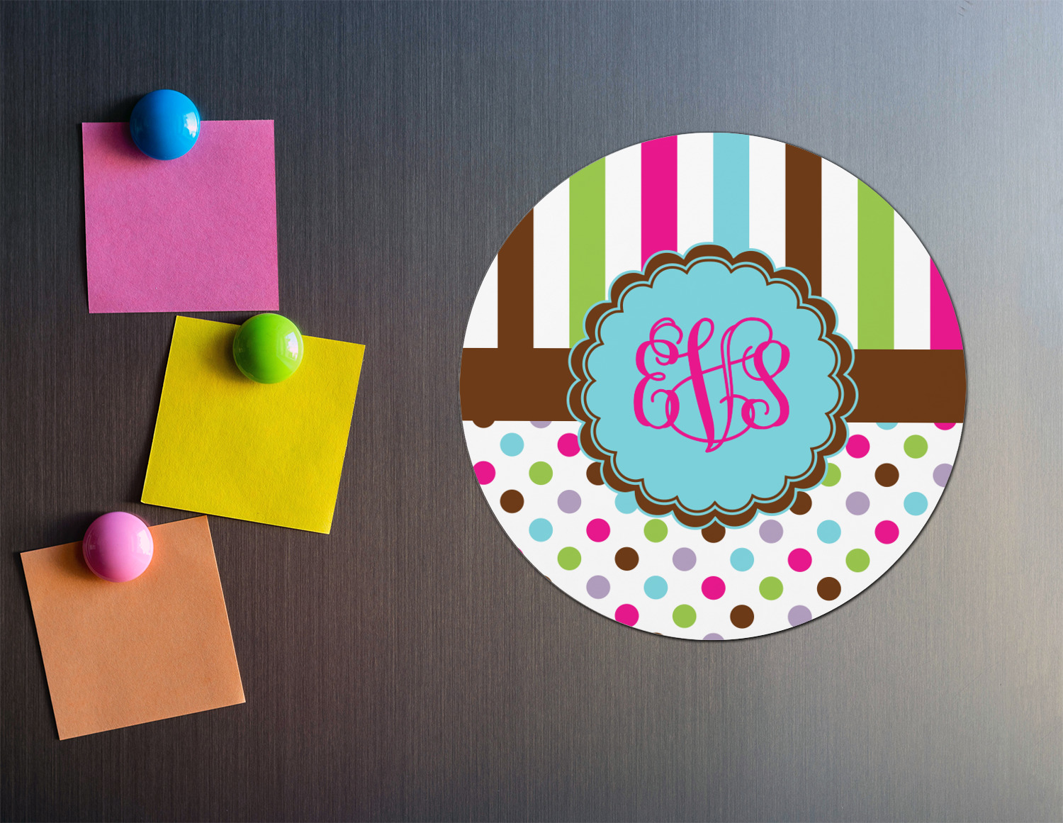 Get rid of all those unslightly magnets you've gathered from food delivery places and jazz up your fridge with our personalized round magnets. If you're looking for a small gift with a big bang you've found them!! With the designs and colors from our collections you are sure to find one that fits anyone's personality.