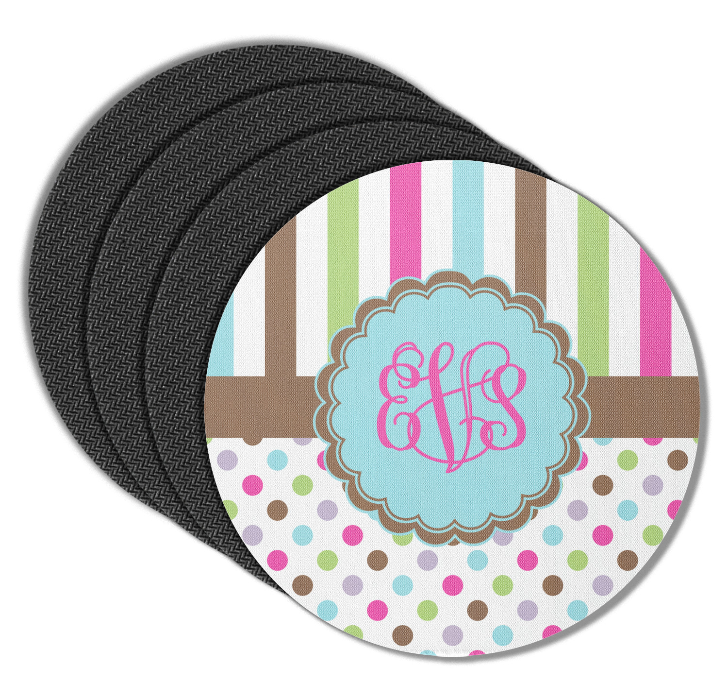 These drink coasters have a smooth, polyester top and a textured, rubber backing on its bottom. The non-slip rubber backing underneath works to keep any spills at bay. At 4 by 4 by 0.25 inches thick, these custom coasters are a suitable size for most drinkware. Your personalization is displayed atop the face of the cup coaster. We sell these rubber coasters in two different shapes: square and round. You can buy each shape as singulars or as a set of 4.