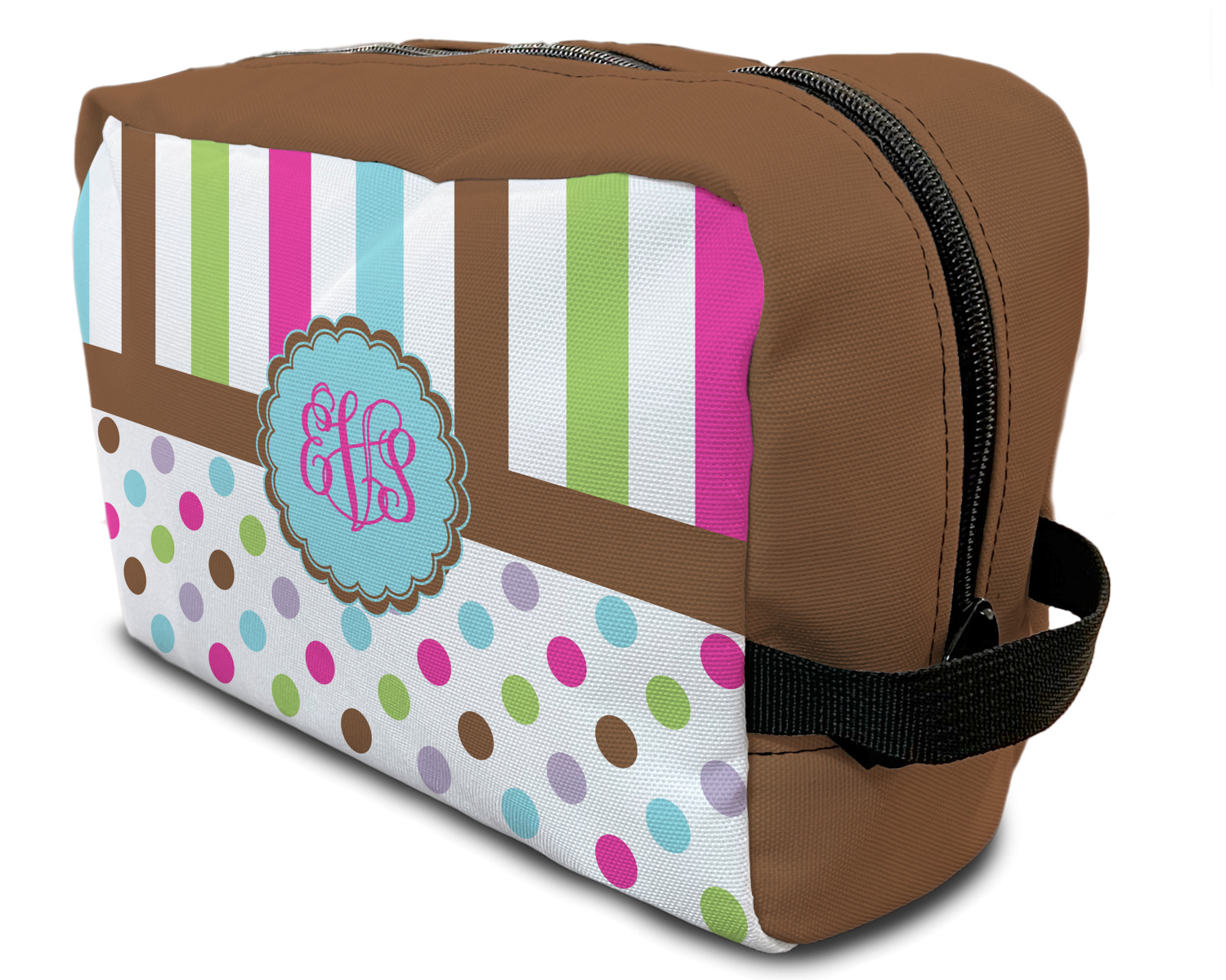 Designing a toiletry bag for yourself or as a gift can be a lot of fun. Our goal is for you to design a bag that reflects your personality and personal style. Our dopp kits are set up so you can design the front, the back and select a coordinating color for the zippered area.
