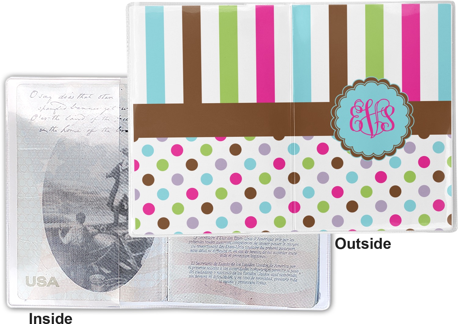 This cover is made of a sturdy clear vinyl with a personalized vinyl insert inside. There is a large and a small pocket on either side to hold the covers of your passport easily and firmly. The passport holder is approximately 7.5" x 5.25", the perfect size to snugly fit your passport. This slim cover is the perfect way to protect your passport without being one more bulky item you have to carry.