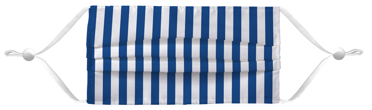 These fun face masks are 7" wide and 3.5" high. They feature pleats, adjustable ear loops, and are made with two layers of fabric. The top layer where your design is printed is a breathable polyester sheeting, while the inside layer is a soft microfiber polyester