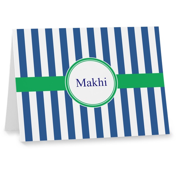 Our custom folded note cards are printed on premium 100lb. card stock and comes with white envelopes. The note card measure 5.5 by 4.25 inches and are blank on the inside for your handwritten message.