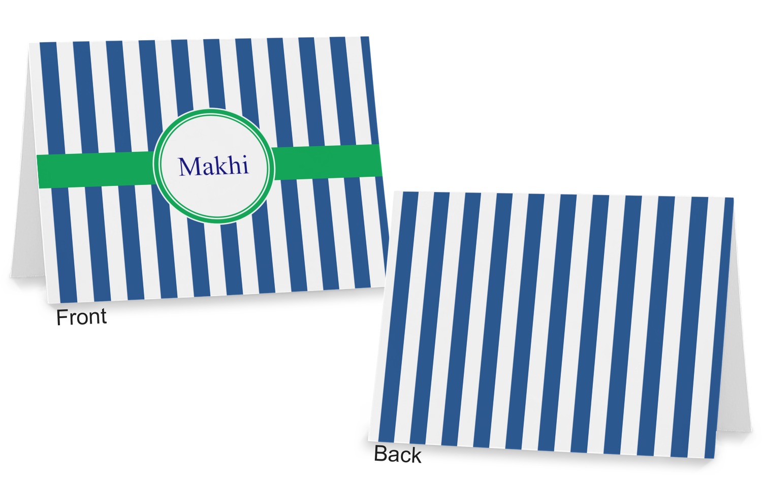 The cards can be customized horizontally or vertically. You can personalized the front AND the back to your exact specifications.