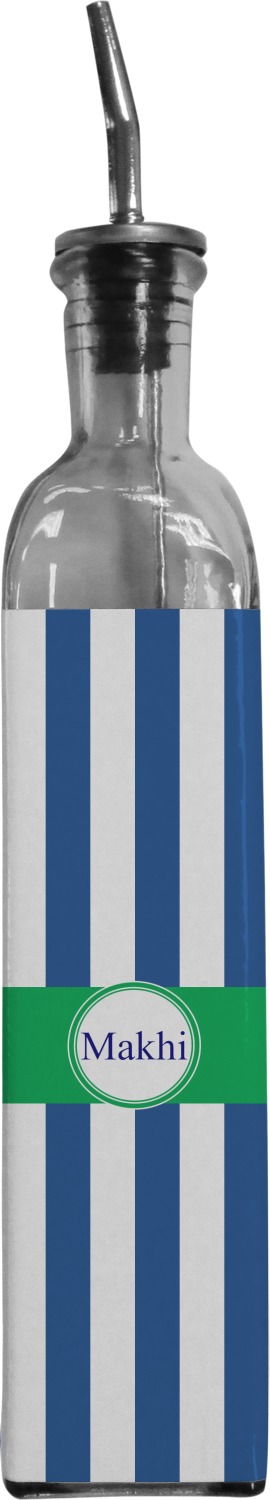 Made from recycled glass in Spain, these oil bottles have a classic, delicate look, and are accompanied by a metal spout for controlled pouring. Each bottle holds approximately 13 ounces and measures at 12 by 2 inches. We customize your glass oil bottle by applying your personalized design on the front and sides, using an adhesive. Our customizable stickers are made from high quality, gloss vinyl and are printed with waterproof, eco-solvent inks. These pieces are machine cut for accuracy and symmetry. The result is a robust, waterproof, adhesive decal that will not fade or deteriorate with time.