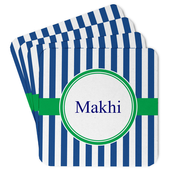 These coasters are perfectly sized for just about any drink being a 4"in square. The paper construction is a thick heavyweight 80 point pulpboard perfect for absorbing the condensation on the outside of your glass.