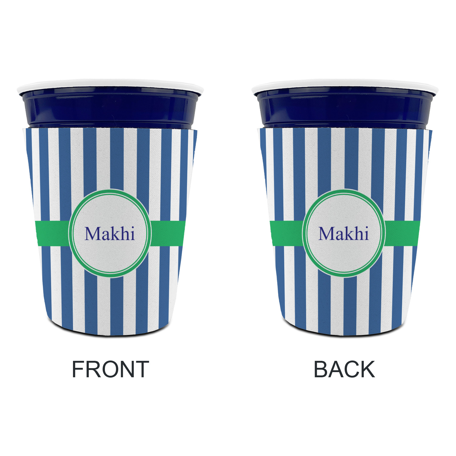 Made from neoprene with a polyester outer fabric and sewn seams, these premium quality party cup sleeves are very durable and will hold up to heavy use. They are available in 2 styles - with a bottom or just a sleeve to go around the outside of the tapered cup. The sleeve covers are about 4" tall and cover about 90% of the classic 16 oz. Solo cup.